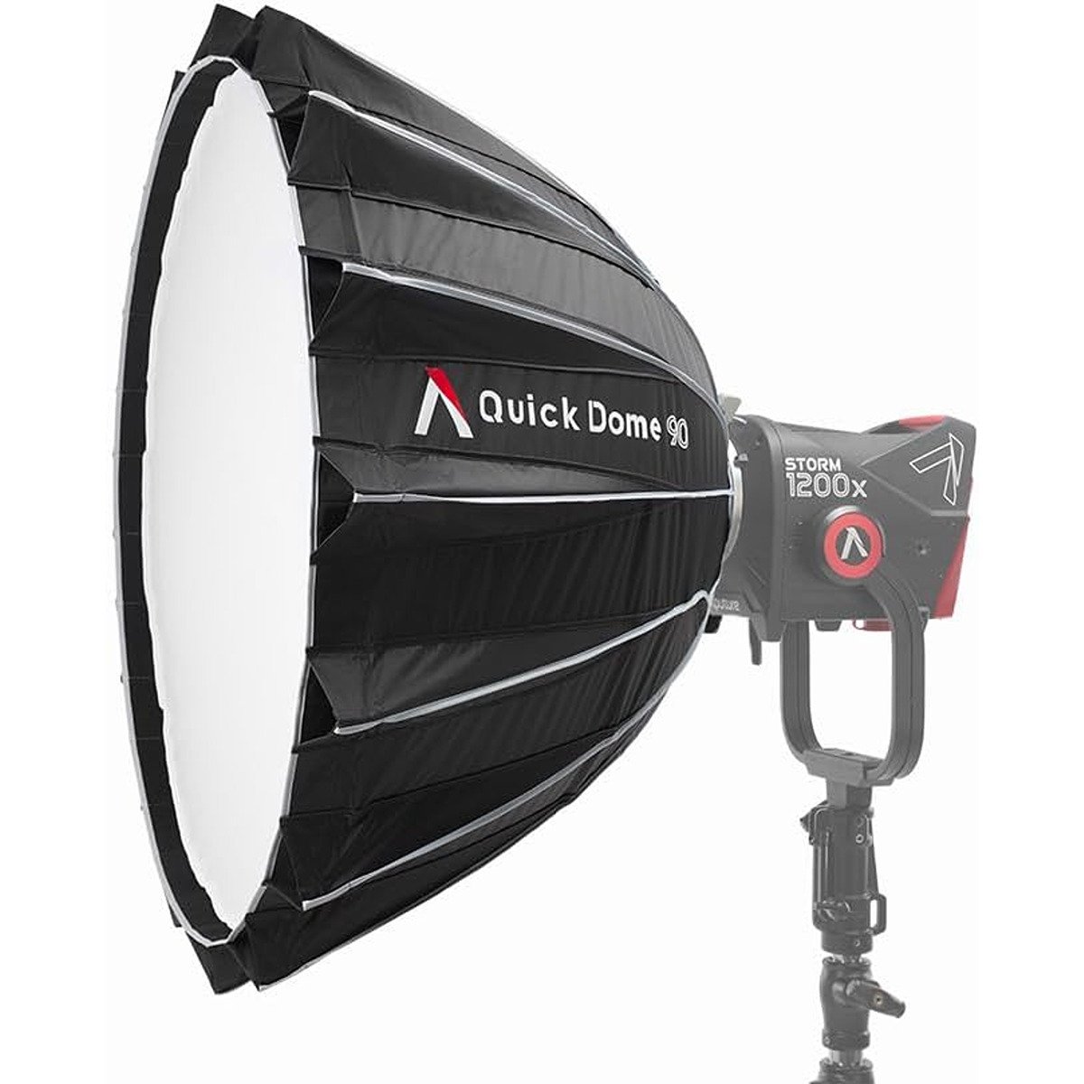 When the shoot wraps, the Quick Dome 90 packs flat and compactly into its durable carrying bag, making transport and storage effortless. Built with robust steel rods and a universal Bowens mount, it pairs perfectly with Aputure’s STORM, Electro Storm, and Light Storm series, giving you a reliable, professional lighting modifier that’s always ready for set life.