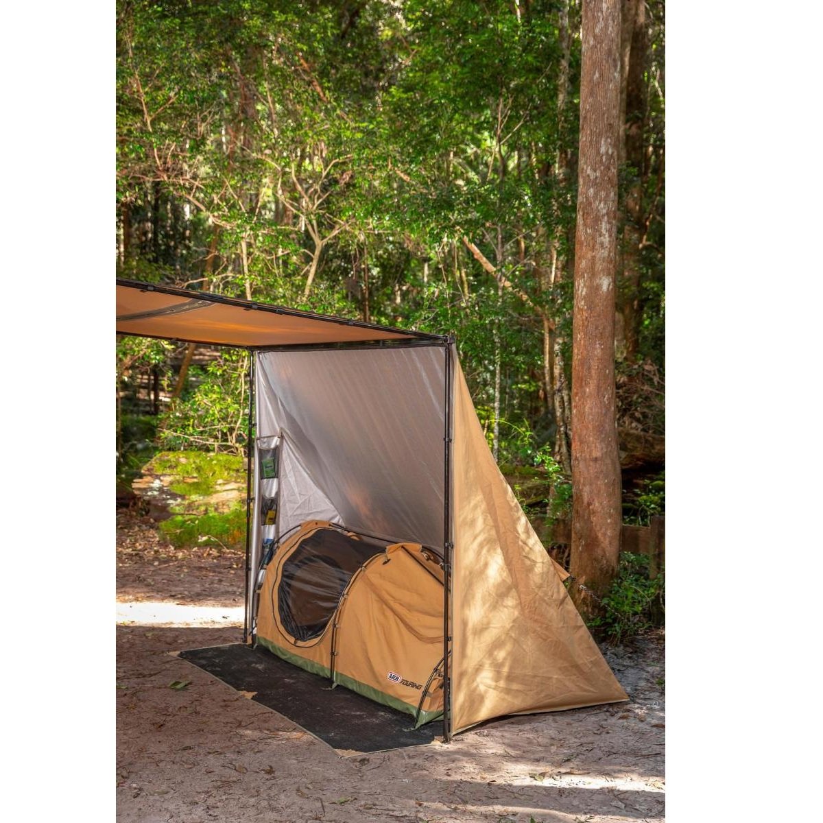 Expanding ARB Touring’s extensive lineup of premium camping & remote area travel accessories is the all-new Deluxe Awning Alcove. Grounded on the desire from modern day campers for increased comfort and convenience, the Deluxe Awning Alcove provides a practical solution to protect you from the elements, in many applications and environments. Whether it’s an enclosed shelter for your swag, verandah for the table and chairs or protected space for storage, this exciting new product is sure to provide a versatile solution against the sun, rain, wind and light. Produced in-line with ARB’s existing Touring line-up, it features a high density 175GSM polyester ripstop canvas. It is also fire retardant for global markets and includes a durable multi mesh matt. With two sizes available and many bespoke features integrated into this product, coupled with the renowned quality we have come to expect from the ARB brand, the Deluxe Awning Alcove is one awning accessory not to be overlooked. FEATURES Integrated multi-mesh matt Matt allows for pegs & poles to be inserted Can be used in conjunction with ARB Deluxe Awning Room Attachment zipper included 2x removable full height integrated organisers 4x pockets on each side for ample storage Silver coated for insulation Securing guy ropes included Sewn in guy rope storage pockets with drain hole Reinforced corners 8x integrated peg eyelets to secure in harsh climates Compact & convenient to store Includes canvas storage bag 8x pegs included w/ bag Fire retardant material for all markets