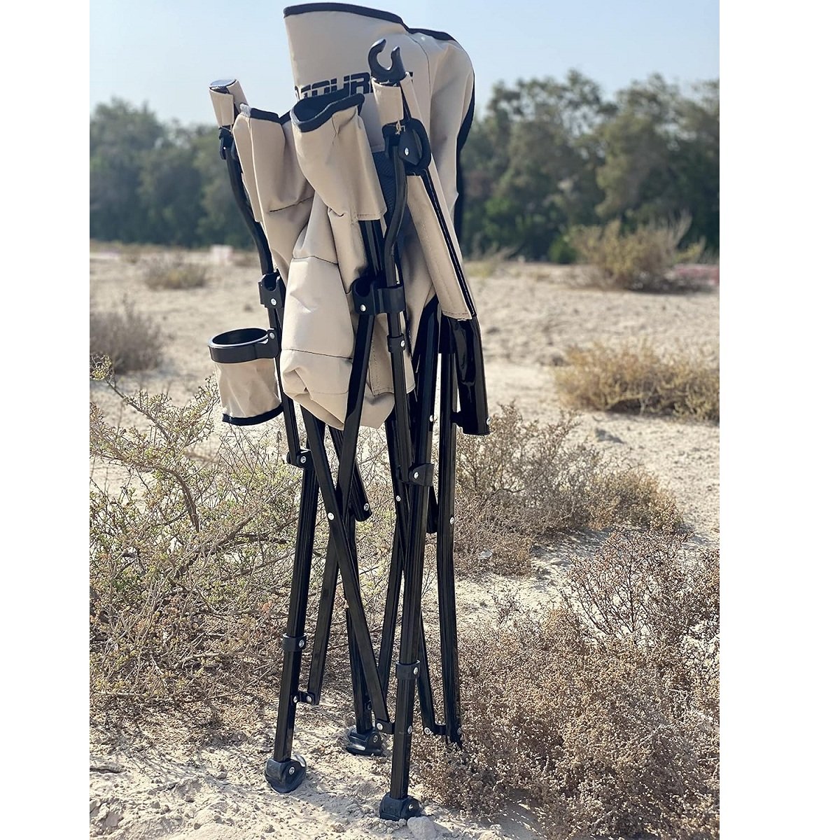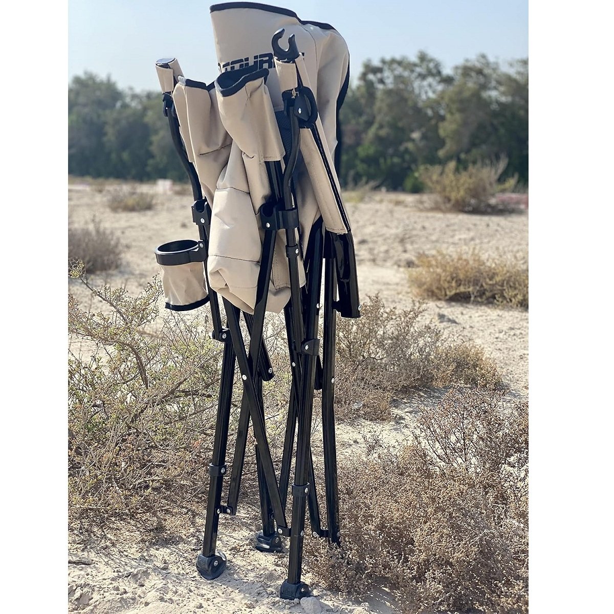 Reclining design for maximum comfort Padded armrests Includes carry bag for easy transportation Specifications: