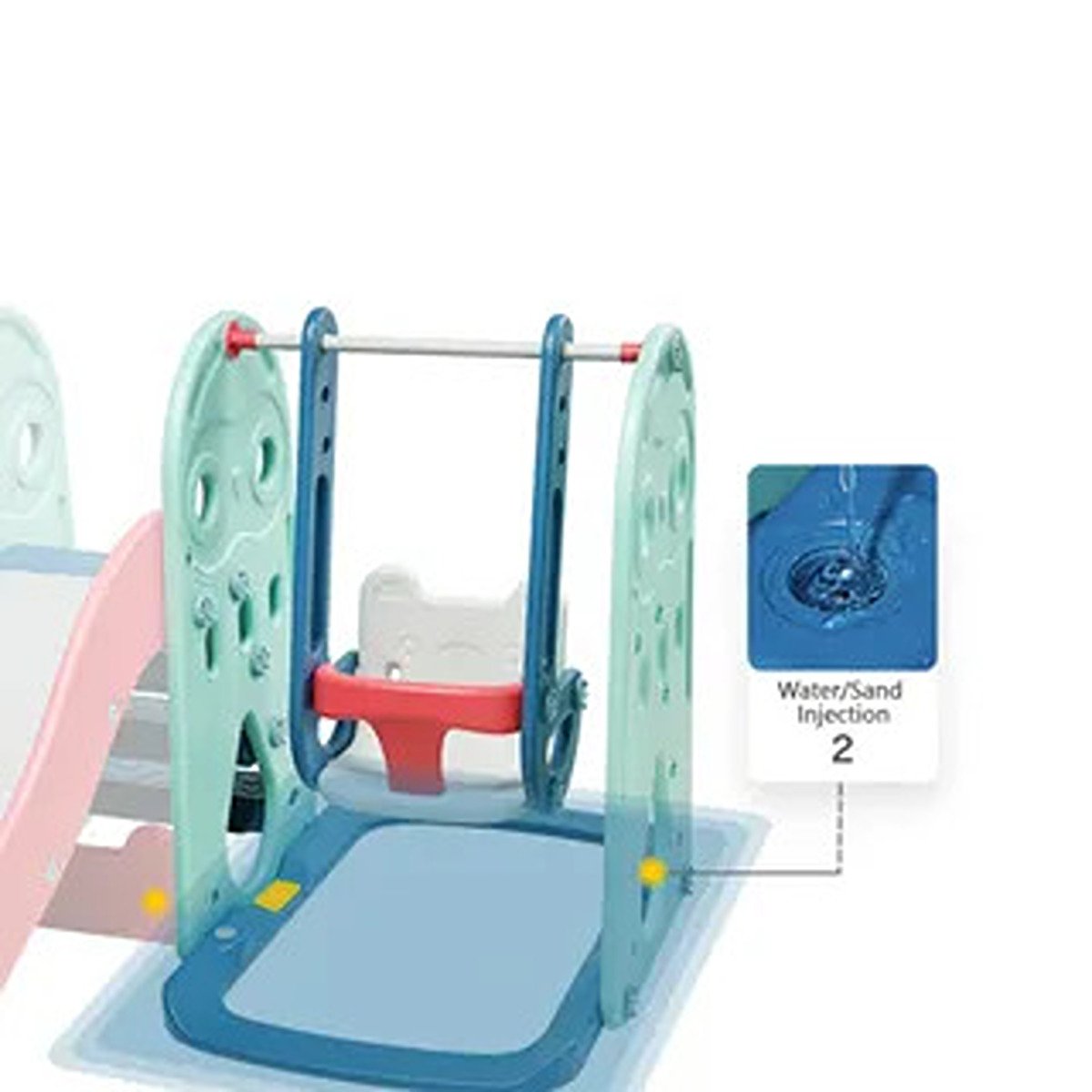 This set includes a smooth slide, a multi-functional basketball hoop with options for basketball, darts, football, and golf, and a comfortable swing. Engineered with a scientific design to ensure safety and prevent any discomfort, it features a bite-friendly surface and easy-to-grip handles. The compact design offers endless fun while supporting your child’s physical development.