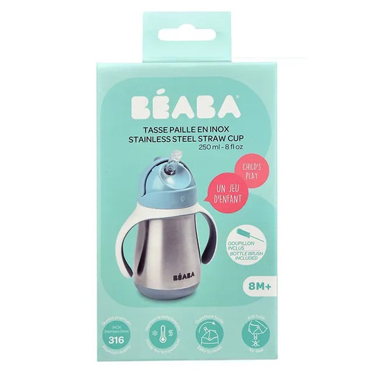 The Beaba 250 ml stainless steel Sippy Cup enables young children, as from 8 months, to learn to drink on their own. Solid and equipped with a double wall, it is ideal for use on the go. This stainless steel straw cup from Beaba has an ergonomic shape , detachable handle and leak-proof closure . Ideal for learning to drink yourself! This way the drinking cup can take a beating and it has the perfect shape for children’s hands. The drinking cup with straw has a double wall so that the content retains its temperature for longer. The silicone straw is removable and can be washed separately. ,