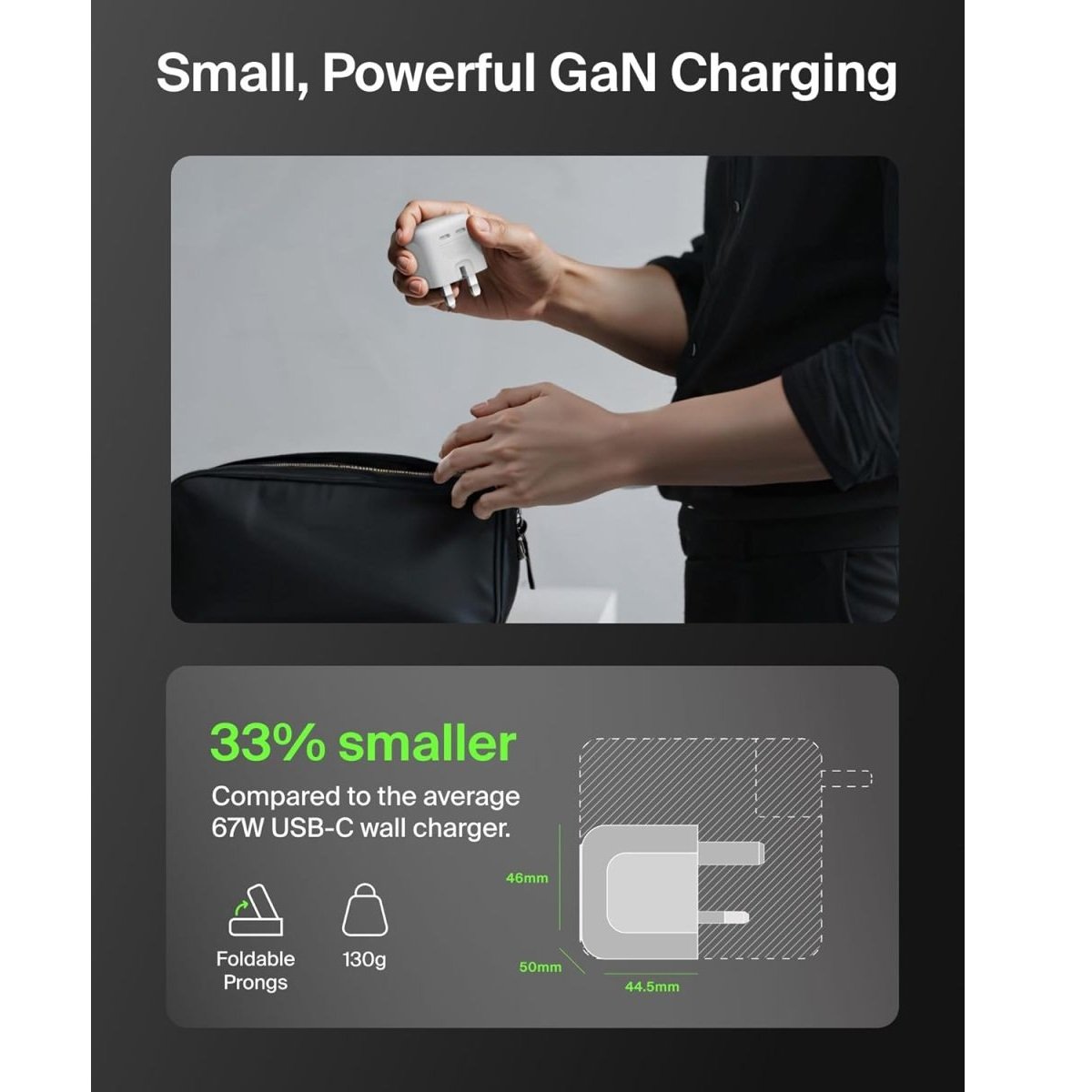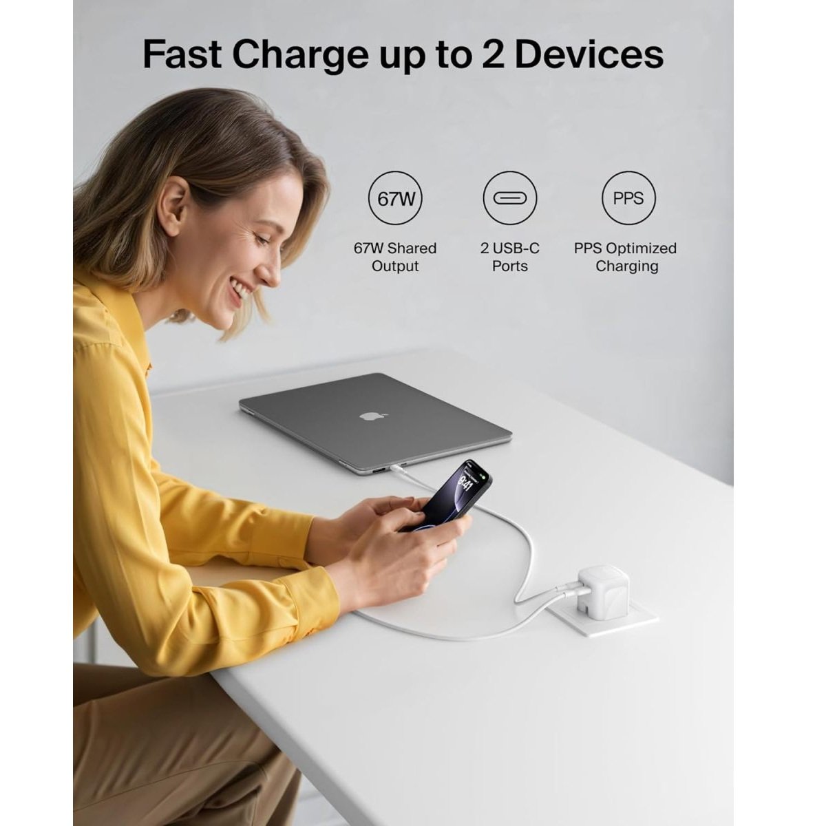 Belkin 2-Port USB C Plug 67W, Dual-Port GaN Charger with 2x USB C Ports, Fast Charging for MacBook, iPhone 17, iPad Pro, Chromebook, Galaxy S25 Ultra, Pixel 10, etc. – Travel Essentials – White