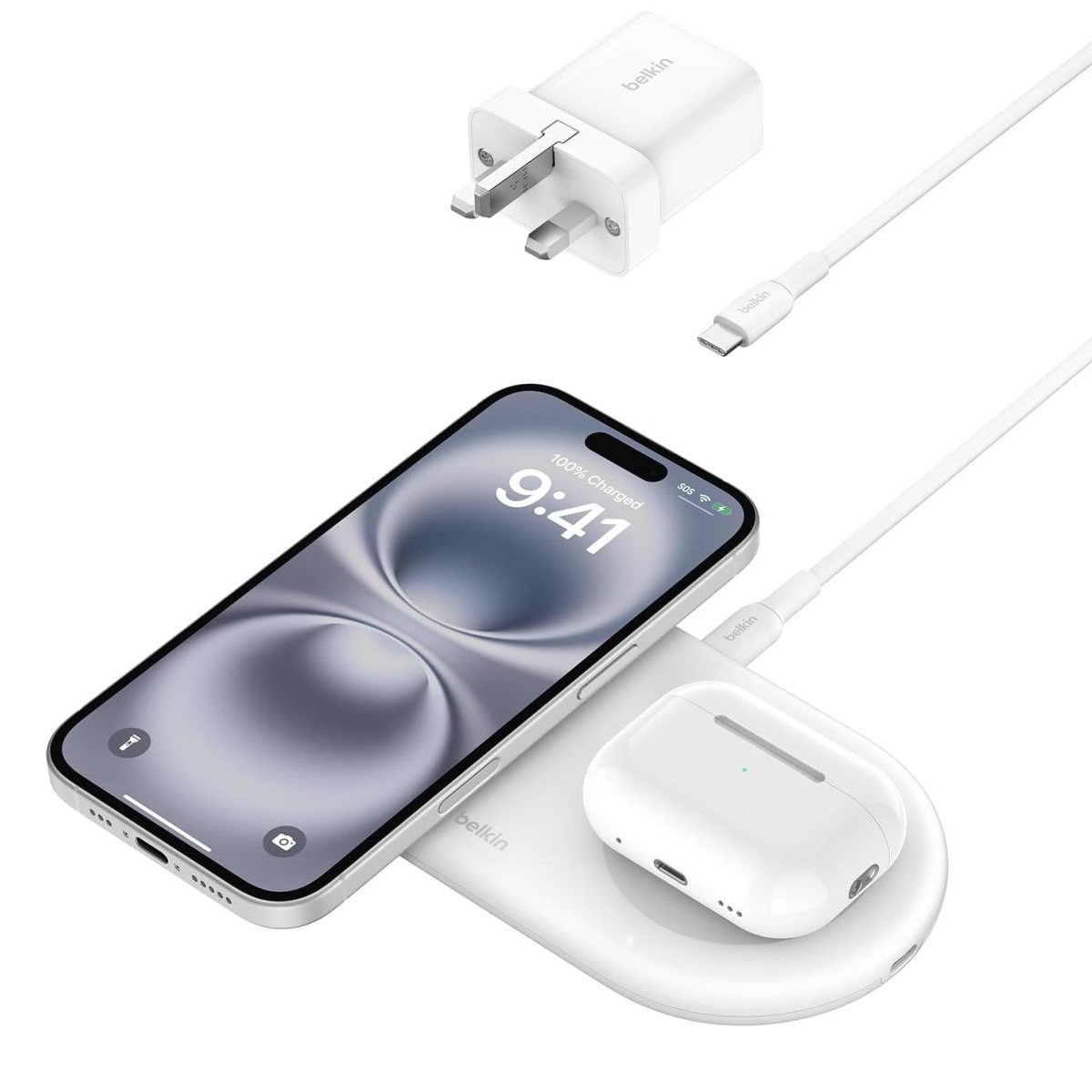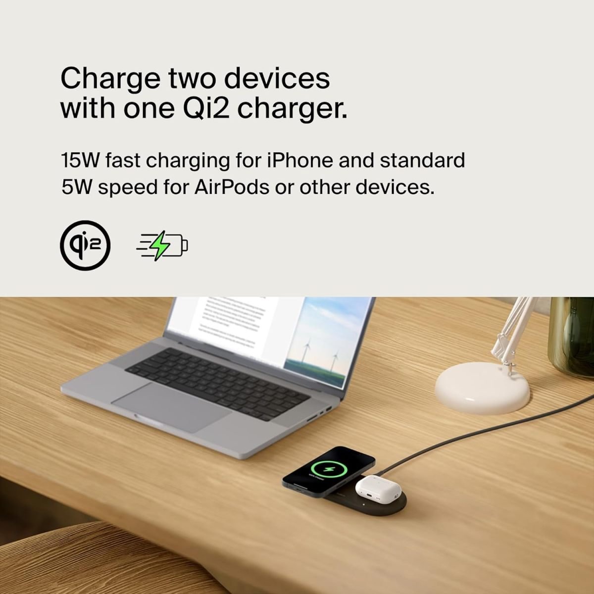 Belkin BoostCharge Pro 2-in-1 Wireless Charging Pad with Magnetic Qi2 15W, Fast Charging iPhone Wireless Charger Compatible with iPhone 15 Series, AirPods, MagSafe Enabled Devices – White
