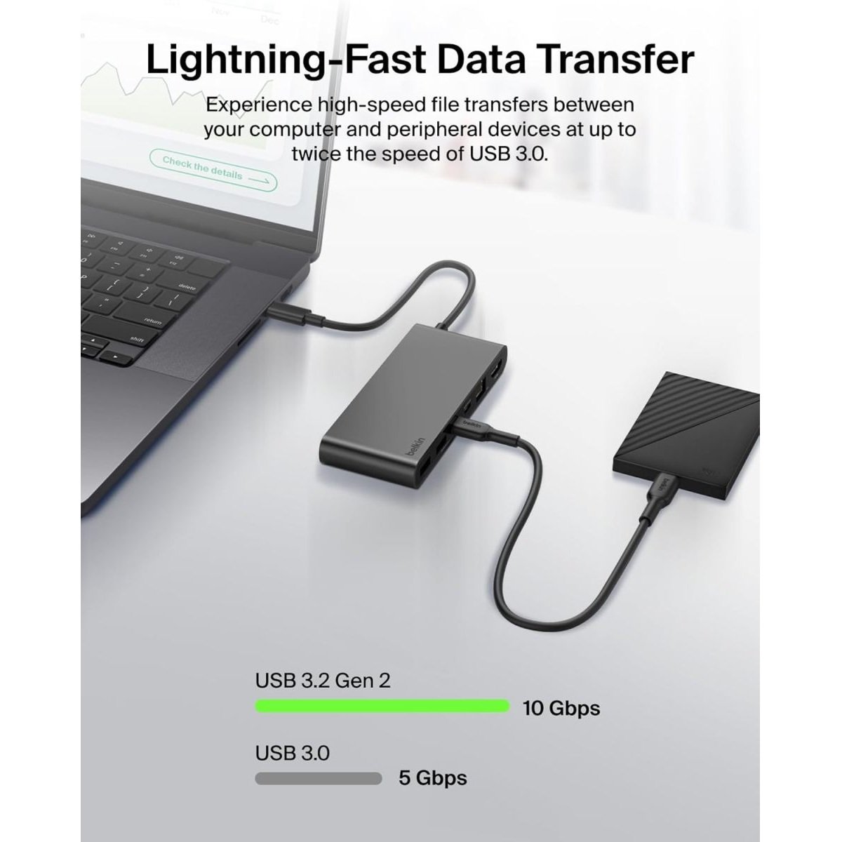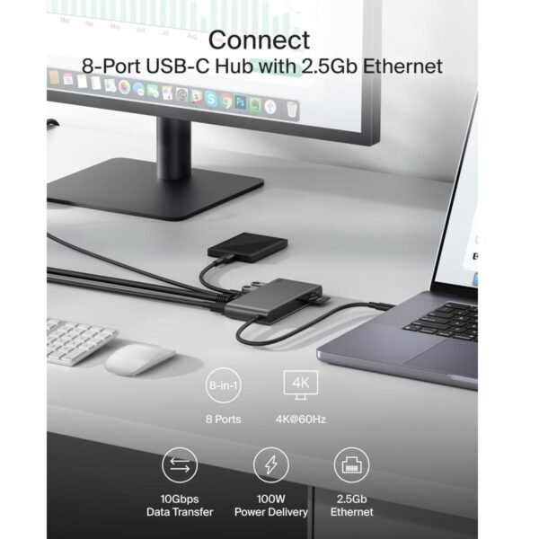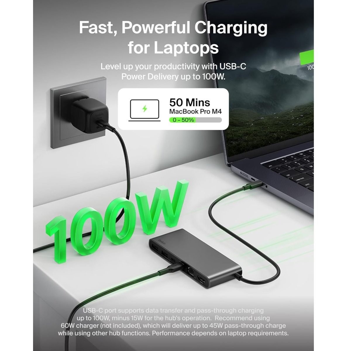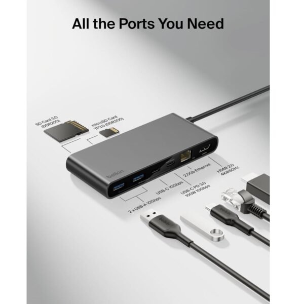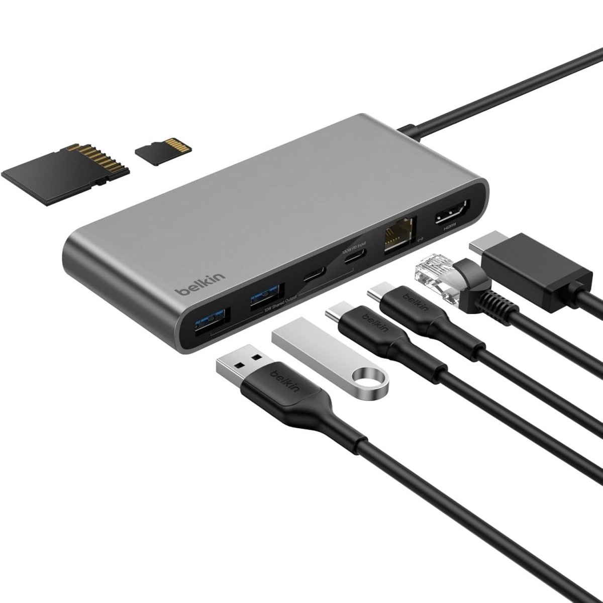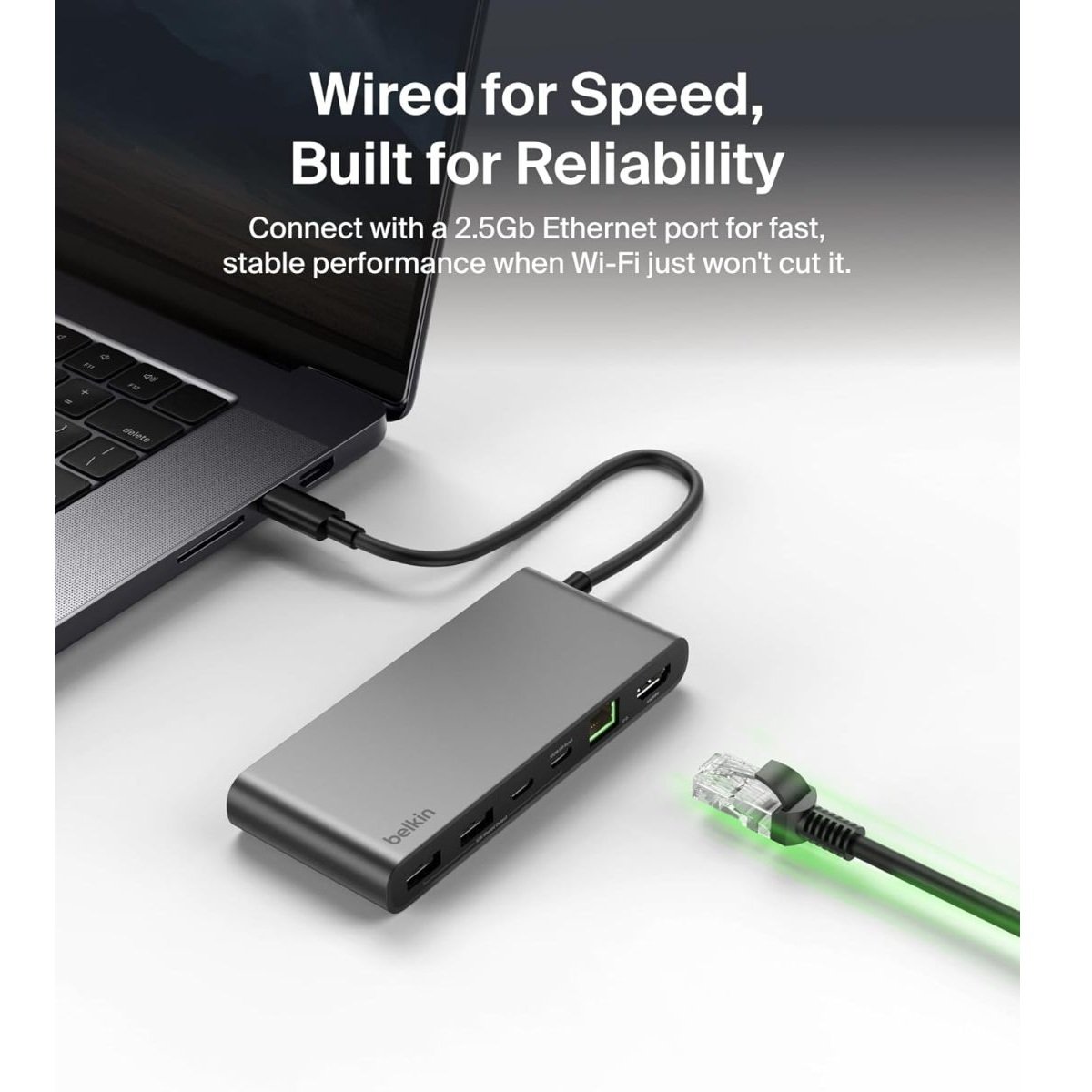 Belkin Connect 8-Port USB C Hub, Supports Display w/Resolutions up to 4K@60Hz – Works with Mac, Windows, and Chromebook – 100W PD w/ 10Gbps Data Transfer Speeds & 2.5Gbps Ethernet – Grey