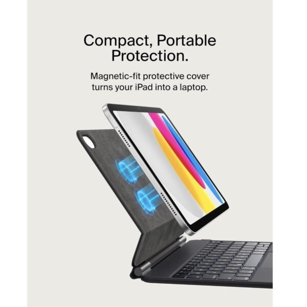 Belkin Connect Keyboard Folio Case w/ Magnetic Stand for iPad 10.9″ (10th Gen)| 64 Keys, Bluetooth, Backlit, Slim & Lightweight, Auto Wake/Sleep, Long Battery – Arabic English Keyboard – Black