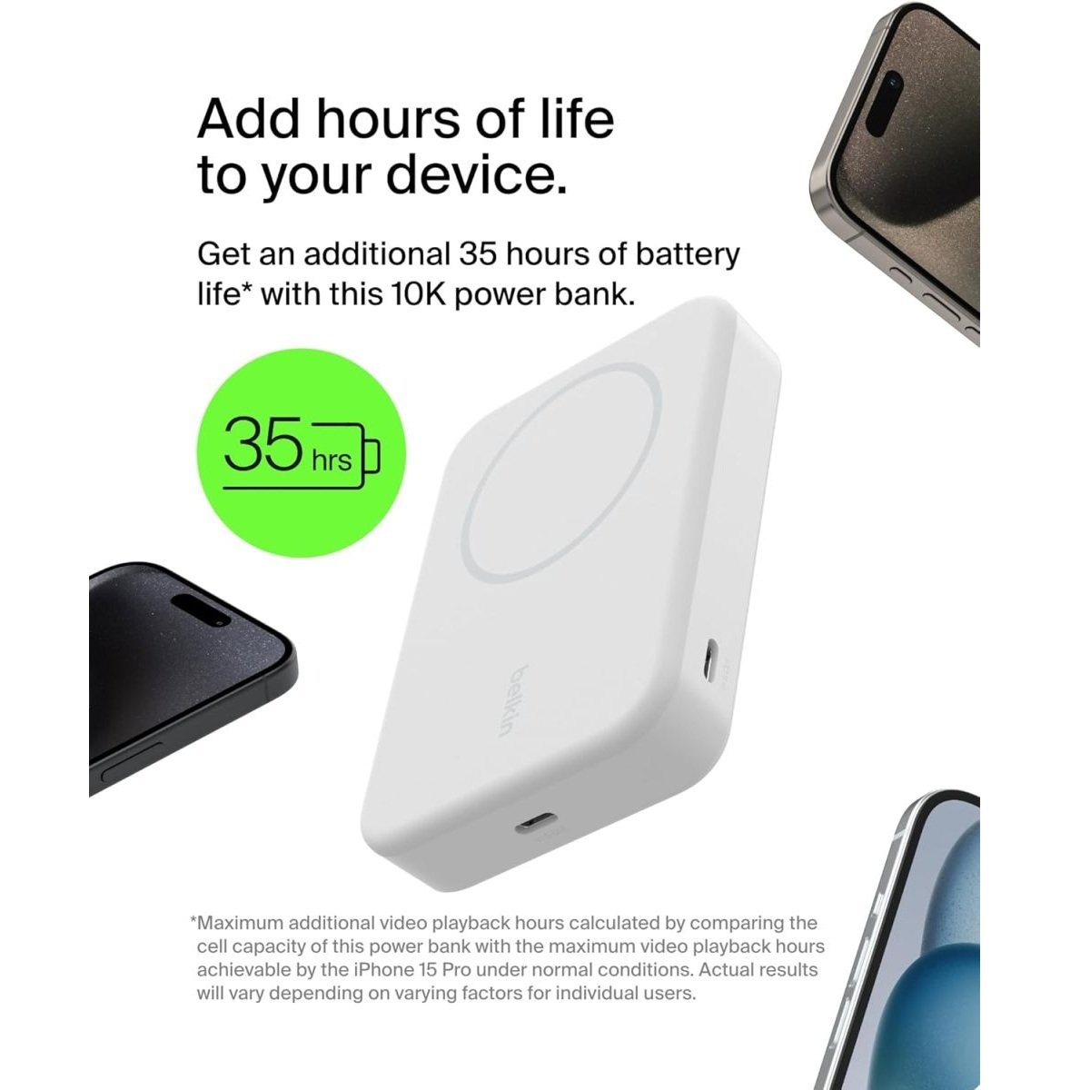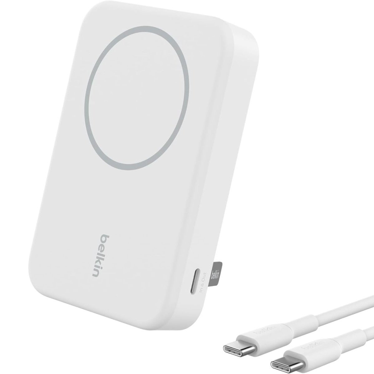 BELKIN Magnetic Qi2 Wireless Power Bank 10KmAh + Kick Stand| 15W MagSafe Portable Charger,Movies, Video Call, NightStand, for Apple iPhone 16/15/14/13/12 Series, S25/24/23 Ultra, iOS & Android – White