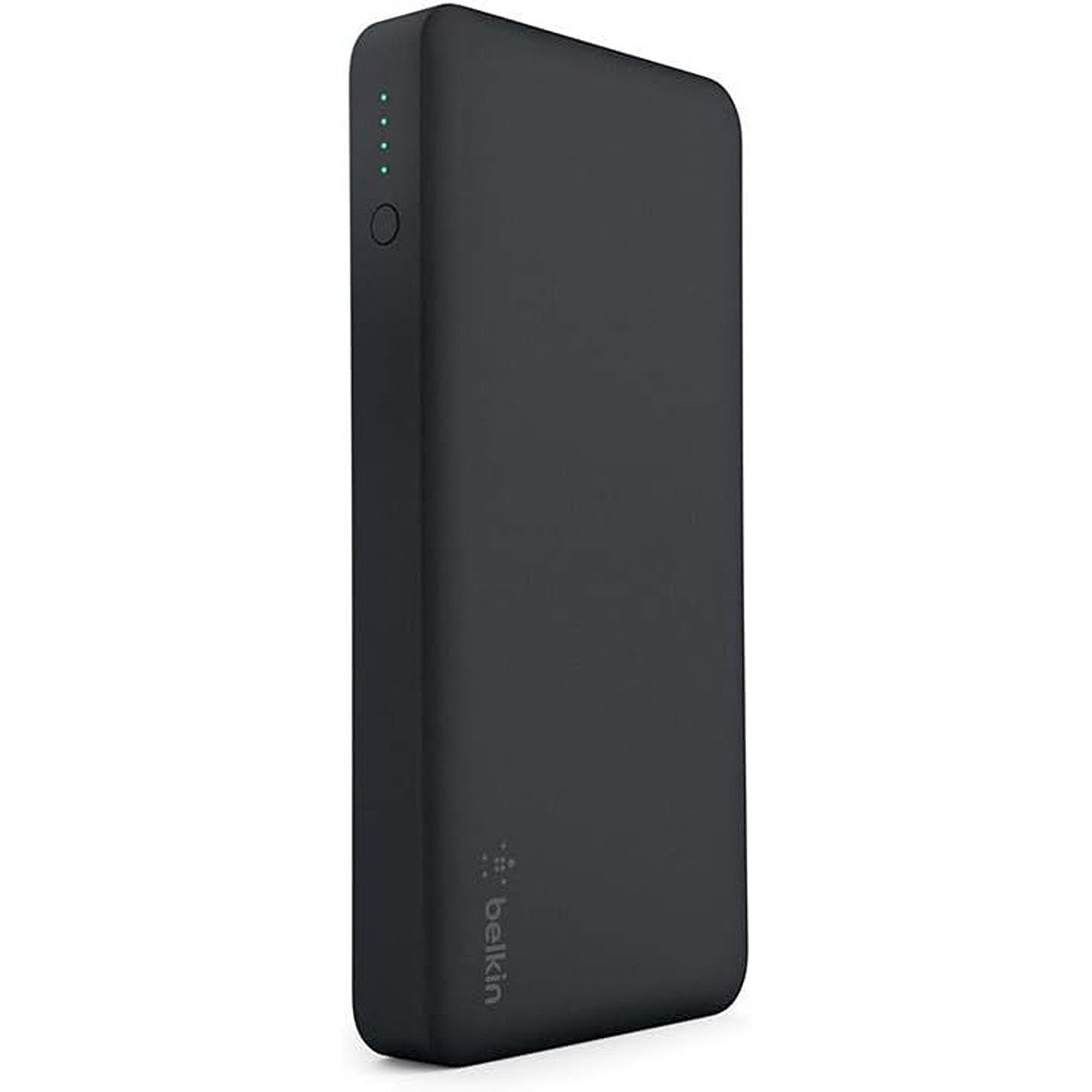 Product Charge Up Again and AgainStay charged anywhere with a slim and lightweight power bank (aka portable charger) that fits easily into your pocket or bag. 15,000 m Ah recharges a smartphone up to five times*, placing the Pocket Power 15 K ahead of its class as one of the powerful portable batteries available. Two universal USB-A ports deliver up to 3.4 A of total power to quickly and safely charge devices like smartwatches, fitness bands, headphones, speakers and more. A 5 V 2.0 A input allows the power bank to recharge quickly between uses, so you can keep moving.*Charges IPhone 7 (running i O S10) up to five times on a single charge in internal testing.Six Points Safety ChecklistA six points checklist guarantees all Belkin batteries operate with utmost safety and satisfaction.Power efficiency input – charges battery faster (above 90 Percent) Power efficiency output – charges device faster (above 90 Percent) Temperature rise – prevents energy loss (below 10 Percent) Level voltage output – at maximum for each connected device Battery quality – passes stringent testing schedule Third party compliance – surpasses stipulations from owners of proprietary technology The Safety TriangleBelkin batteries include sensors monitoring heat, voltage and circuitry. Excess heat, voltage fluctuation or circuit abnormalities activate an override that shuts the battery down immediately for utmost safety.Universal CompatibilityThe Pocket Power 15 K battery pack charges all electronic devices that can be charged via an USB-A cable, including almost all cell phones, smartphones (like IPhone, Samsung Galaxy, H T C, Sony, L G, Huawei, Motorola, Nokia), tablets (like iPad, iPad Pro), smart watches (like Apple watch), fitness bands, headphones, speakers, cameras, action cameras, M P3 players, e-book readers and others. Simply plug your existing charging cable into one of the two USB-A ports of the power bank for charging at optimal speed.Box ContainsPocket power 15000 m Ah power bank 6 Inch/15 cm micro-USB to USB-A cable Pocket Power 15 K Power BankCharge Up AnywhereStay charged anywhere with a slim and lightweight power bank (aka portable charger) that fits easily into your pocket or bag. 15,000 m Ah recharges a smartphone up to 5 times*, placing the Pocket Power 15 K ahead of its class as one of the most powerful portable batteries available. Two universal USB-A ports deliver up to 3.4 A of total power to quickly and safely charge devices like smartwatches, fitness bands, headphones, speakers and more. A 5 V 2.0 A input allows the power bank to recharge quickly between uses, so you can keep moving.*Charges IPhone 7 (running i O S10) up to 5 times on a single charge in internal testing.Box contains15,000 m Ah power bank 6 inch micro-USB cable The Belkin Difference- Pioneer in technology and innovation for over 30 years- Keeps devices safe with automatic shut down in the event of excess heat or voltage spike- Cutting edge technology generates more power from a slimmer, sleeker designCharge Again And Again15,000 m Ah can recharge a state-of-the-art smartphone up to 5 times, providing an additional 57 hours of call time or 50 hours of web browsing.* Don’t worry about finding an outlet or stayinGOn the grid with a power bank that will keep you charged for days on end.*Charges IPhone 7 (running i O S10) up to 5 times on a single charge in internal testing.Dual-Port ChargingDual USB ports allow you to charge two devices at the same time, so you never have to choose between using your phone or tablet, camera or speakers, or anything else you need.5 V 3.4 A = Fast Charging2 universal USB-A ports deliver a total of 5 V 3.4 A output so you can charge your devices in no time, just use the cable provided to begin charging. Recharge between uses quickly with 5 V 2.0 A input via a micro-USB port. Simply connect to a wall charger or other power supply using the Micro-USB cable provided to recharge your power bank (a.k.a. portable charger).Oh So PortableElegant, slim design and lightweight components allow this power bank to travel with you hassle-free. Durable plastic casing keeps the internal circuit board safe in your pocket or bag. Powerful polymer battery cells are efficient alternatives to heavier traditional cells, making Pocket Power 15 K even easier to transport.Key Features And Benefits- Temperature rise regulation prevents overheating and energy loss- The thin, polymer battery cell more than doubles the battery life of mobile devices*- Durable, plastic casing keeps the battery pack safe and lightweight*When charging IPhone 7The Safety TriangleBelkin batteries include sensors to monitor heat, voltage and circuitry so the device won’t overheat or surge. Excess heat, voltage fluctuation or circuit abnormalities activate an override that immediately shuts the battery down and keeps your devices safe.