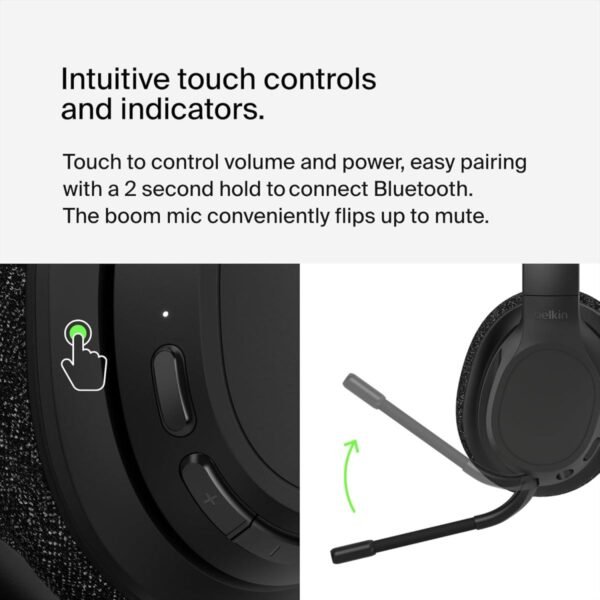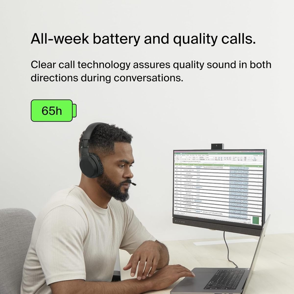 Belkin SoundForm Adapt Wireless Over-Ear Bluetooth Headset| 65Hrs Playtime, On-Board Controls, Flip-to-Mute Boom Mic, Stylish w/ Great Sound, USB-C port Fast Charging, Wired or Wireless Use – Black