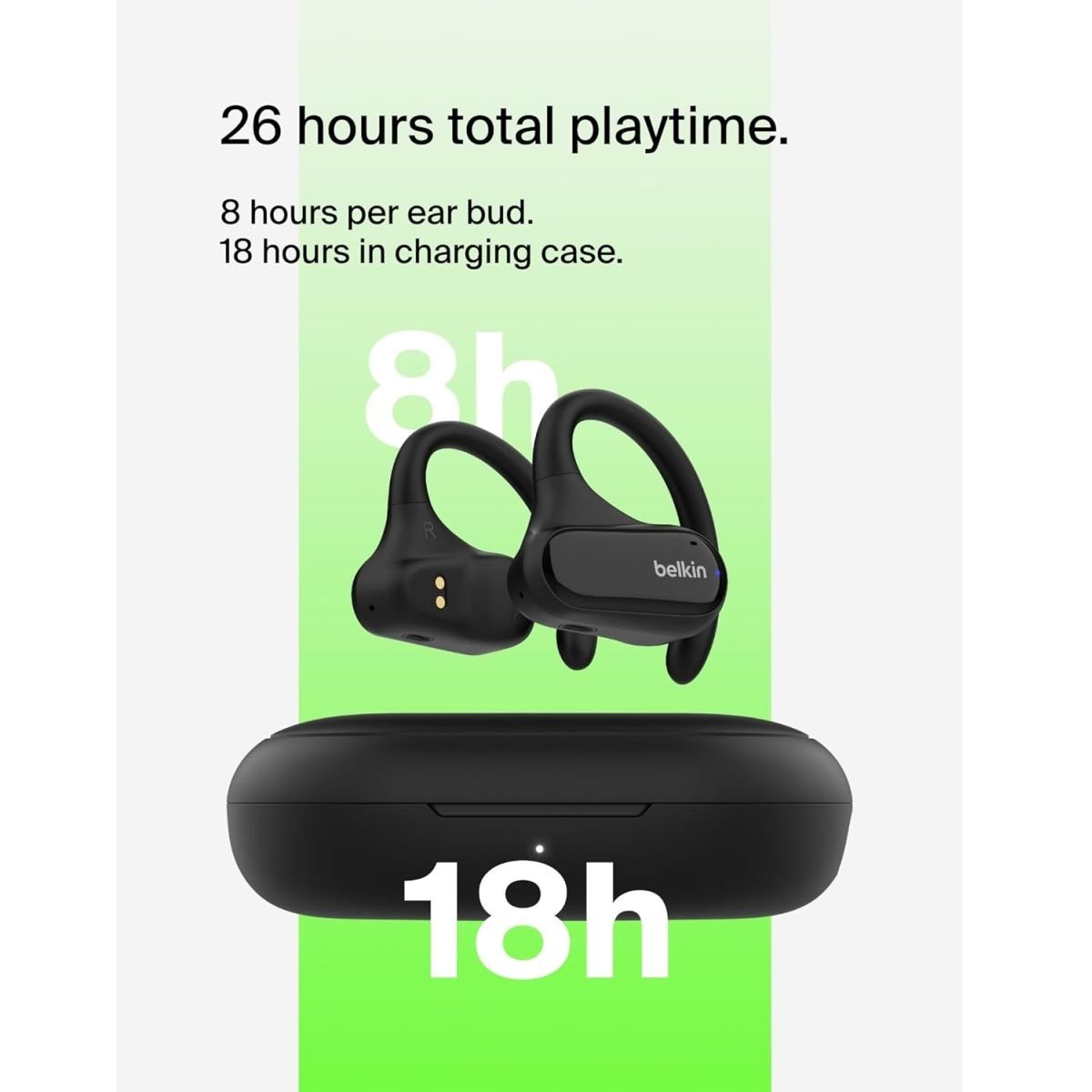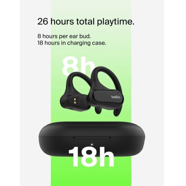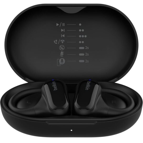 BELKIN SoundForm ClearFit Open-Ear Wireless Earbuds| Bluetooth Headphones w/ Sound Awareness, for Sports, Outdoor Activities, WorkOuts, Clear Calls and Music, for iOS & Android – Black