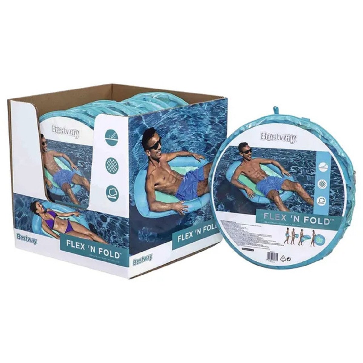 Bring a vacation wherever you are with the Bestway Flex n Fold Chair Lounge. It radiates fun, convenience and luxury. The inner spring structure makes set-up and inflation a breeze. It pops up in seconds, ready for inflation and it quickly twists and folds back down for storage. The ComfortCool mesh seating area keeps you just below the surface of the water, so you stay nice and cool below the warm sun, while the durable, comfortable fabric cover resists puncture and damage. With the large inflation/deflation valve and included carry bag, this float is easy to store during the off-season. With an ultra-cushioning pillow, you’ll be able to relax the day away in both style and comfort. Perfect for a nice summer day, the pop-up Flex n Fold pool float is the ultimate way to unwind on the water.