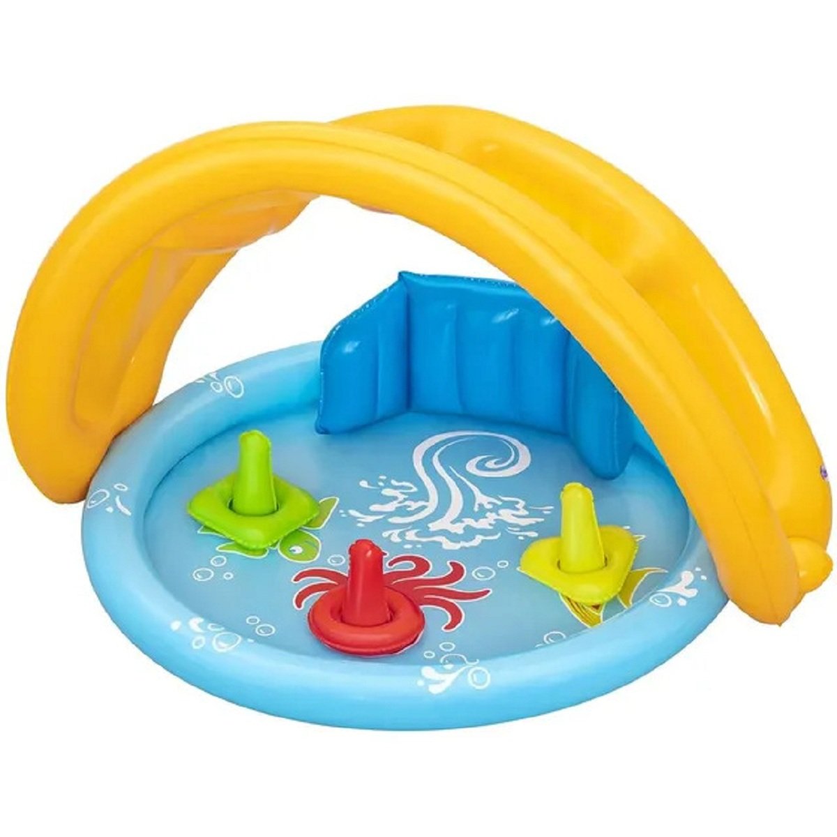 Encourage your child to get their toes wet and explore patterns and movement with our new Bestway Li’l Sea Shapes Baby Pool! The Li’l Sea Shapes Baby Pool features a supportive backrest for little ones still learning to sit up on their own and a colorful matching game. The Li’l Sea Shapes Baby Pool also includes a removable UV Careful sunshade to protect your precious little ones as they match, splash, and play, providing safe, shaded fun in the sun! Or you can take the play inside with you for year-round use thanks to its convenient, mobile design. Remove the shade and leave out the water and the baby pool become a play mat for endless hours of matching fun!