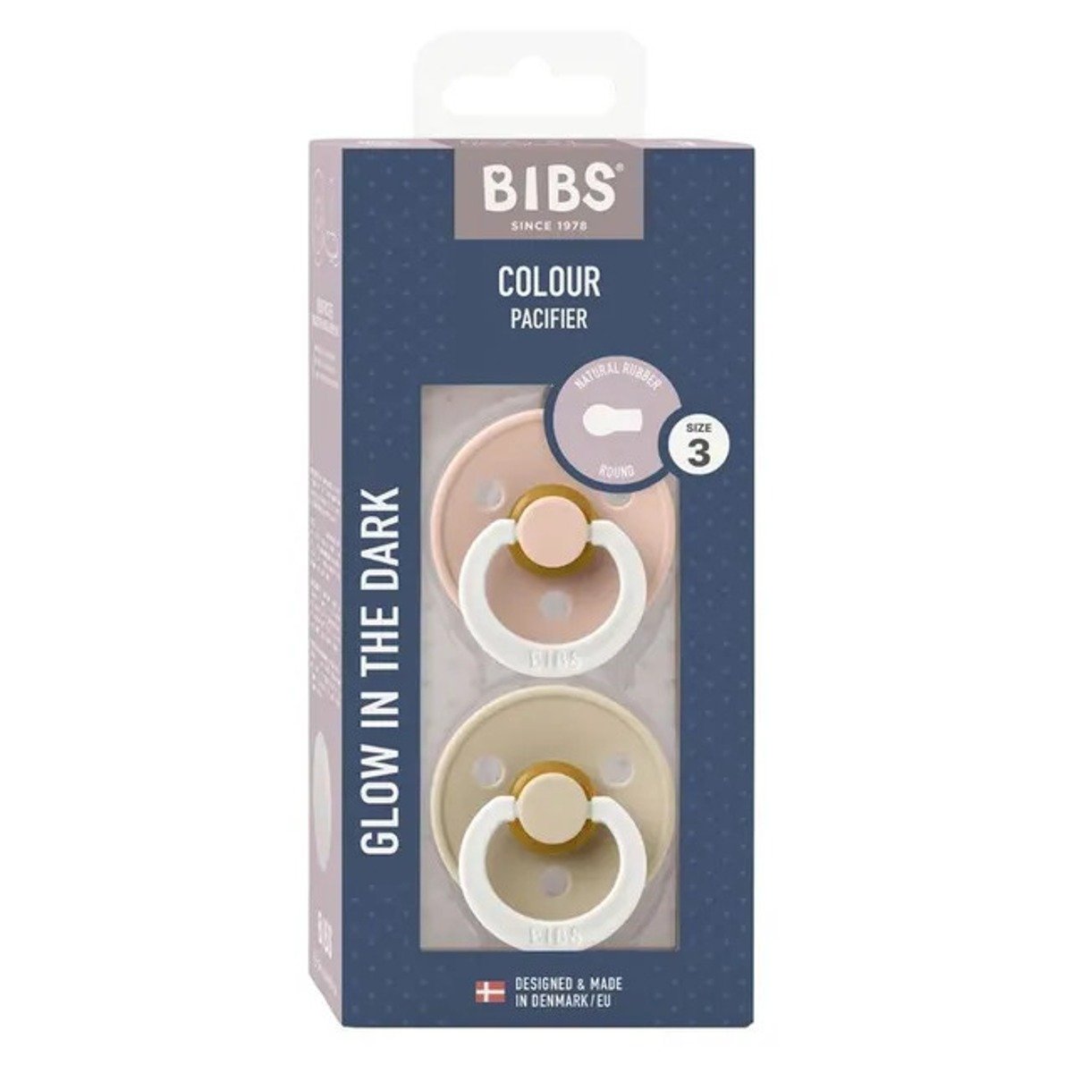 BIBS Colour 2 PACK Latex Size 3 Blush GLOW/Vanilla GLOW