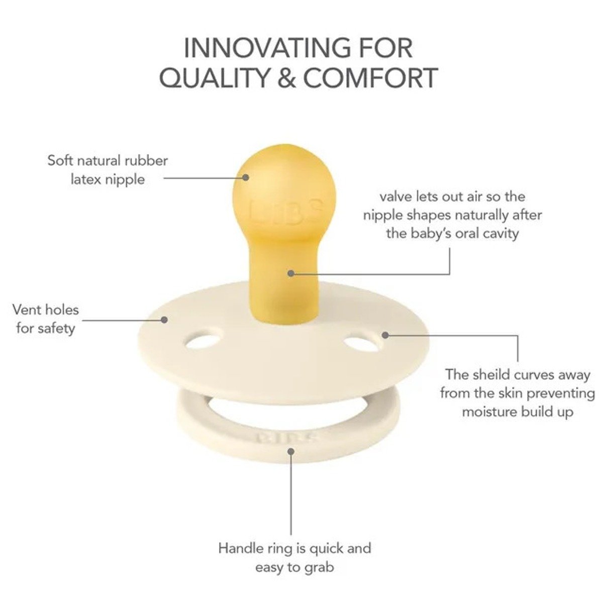 BIBS Round Pacifier Colour 4 Pack Latex Size 2 Ivory Sand Vanilla Dark Oak