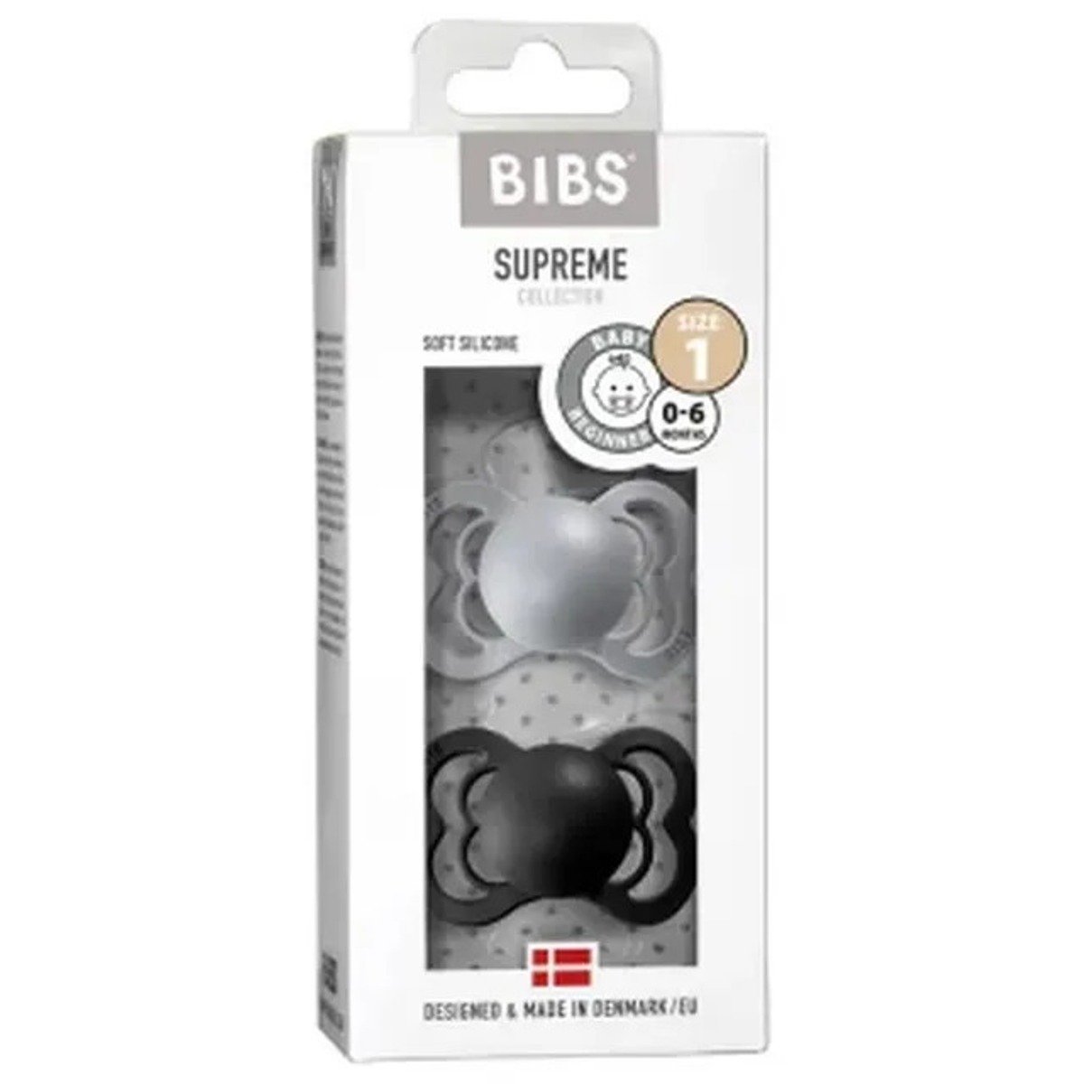 BIBS Supreme 2 PACK Silicone Size 1 Cloud/Black