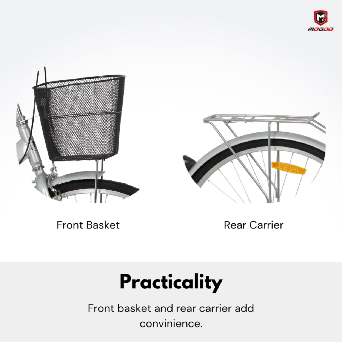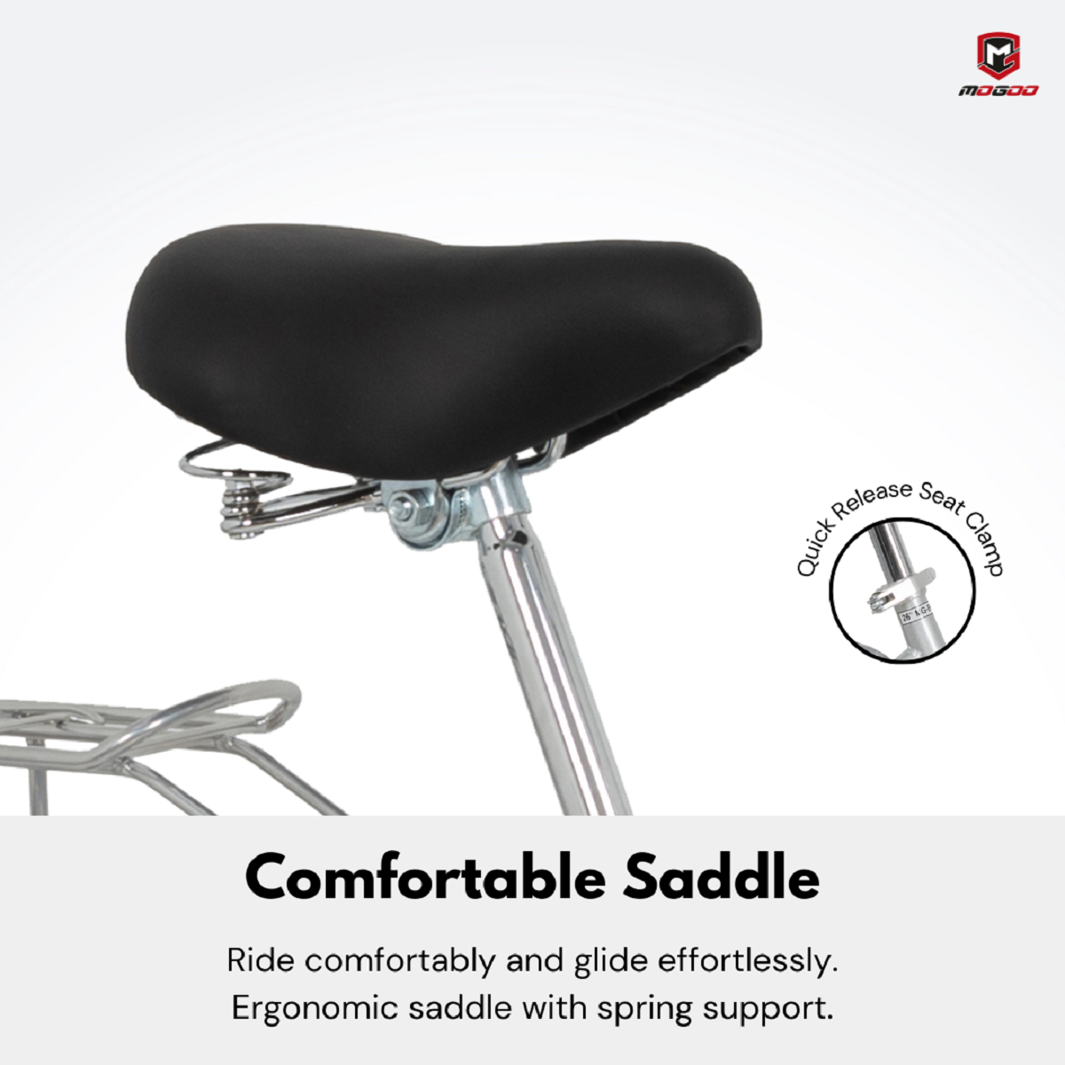 Turn sidewalks into runways with this sweet, playful design. The surprising detail and nuances are what make this Mogoo bike unique. The design places the seat a little farther back and with a lower center of gravity. That results in a more upright riding position with full leg extension This more upright riding position with raised handlebars eliminates wrist, arm, neck, and leg fatigue. You won’t believe the difference in how comfortable you feel while you ride!
