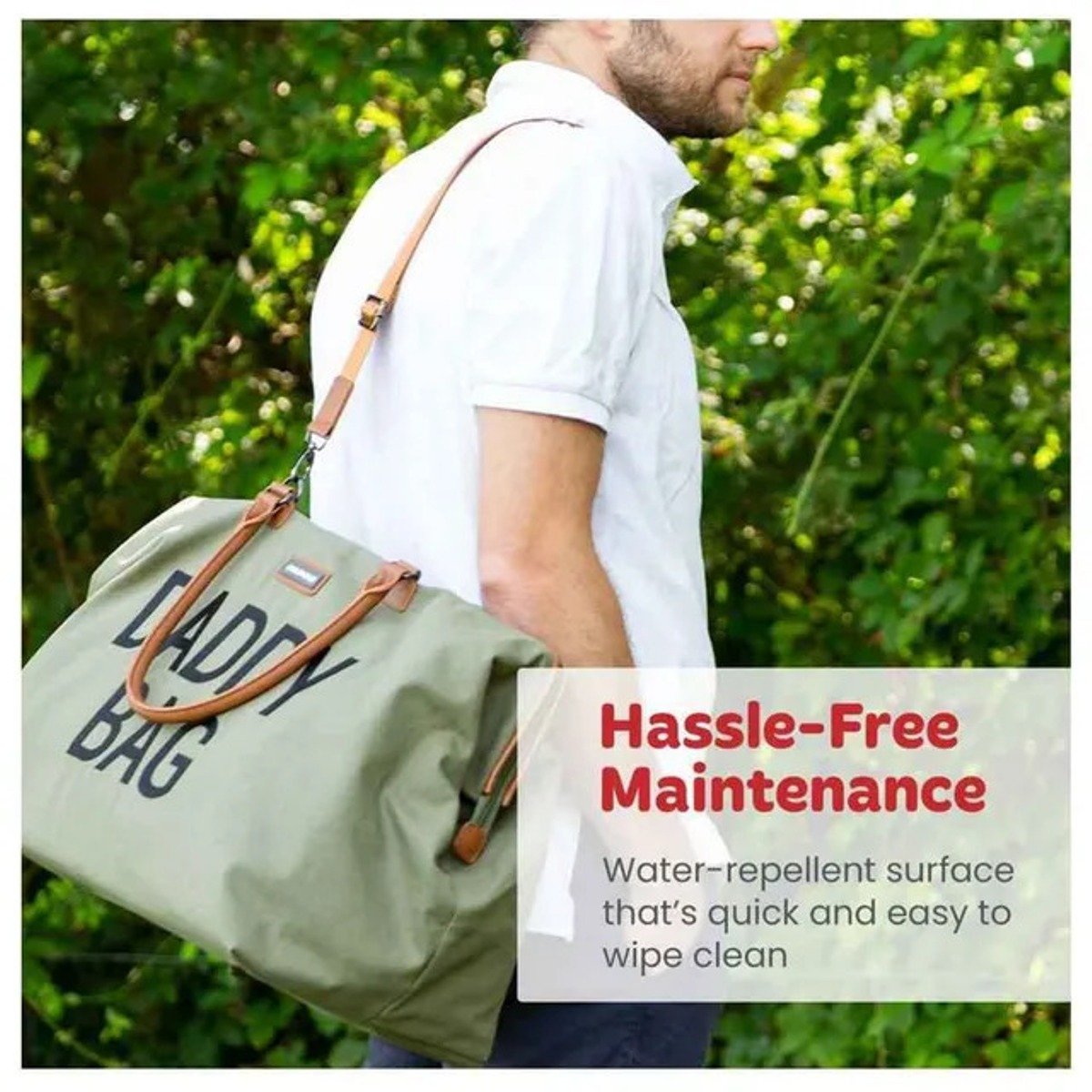 The Childhome Daddy Bag in khaki is a bold and functional diaper bag designed especially for modern fathers. Featuring a signature Belgian design with stylish black embroidery, this roomy bag makes parenting on-the-go easy and organized. It includes multiple compartments, elastic bands, a built-in cooling pouch, and a nursery mat for quick diaper changes. The wide-opening zipper and optional shoulder strap add comfort and convenience, while the durable, water-repellent materials ensure it’s ready for anything-whether used as a diaper bag, gym tote, or travel essential.