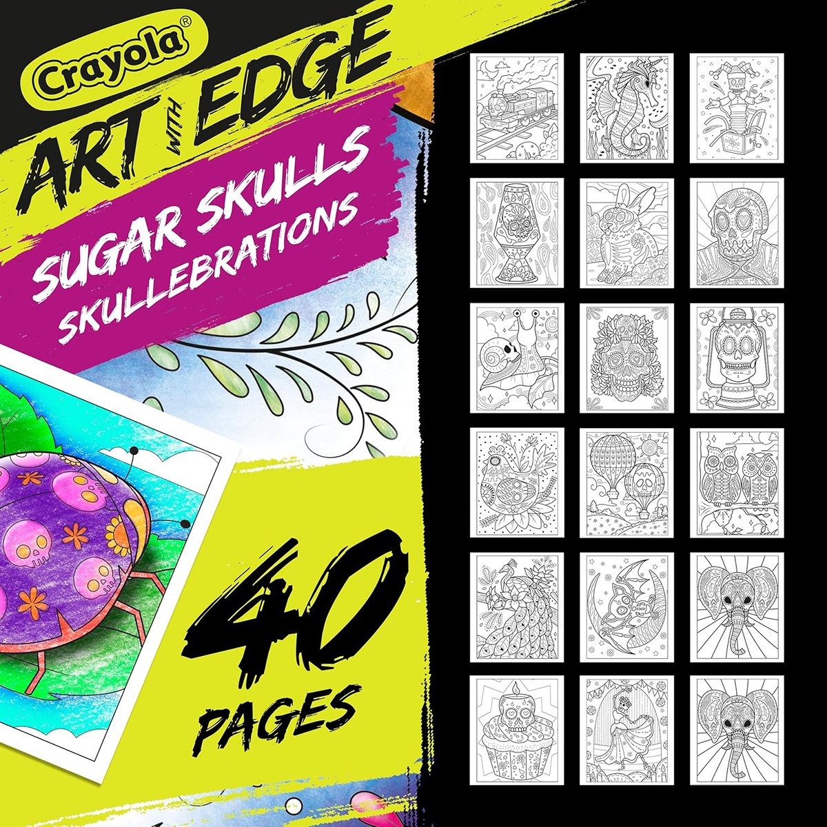 Volume 3 of our popular Art with Edge Sugar Skull Coloring Books. Each of the 32 detailed sugar skull designs presents the perfect mix of cute and macabre scenes. Special metallic foil accent adds an extra pop of fun to your artwork. The perforated 8″ x 10″ pages are perfect for framing. Ideal for older kids and adult coloring enthusiasts.