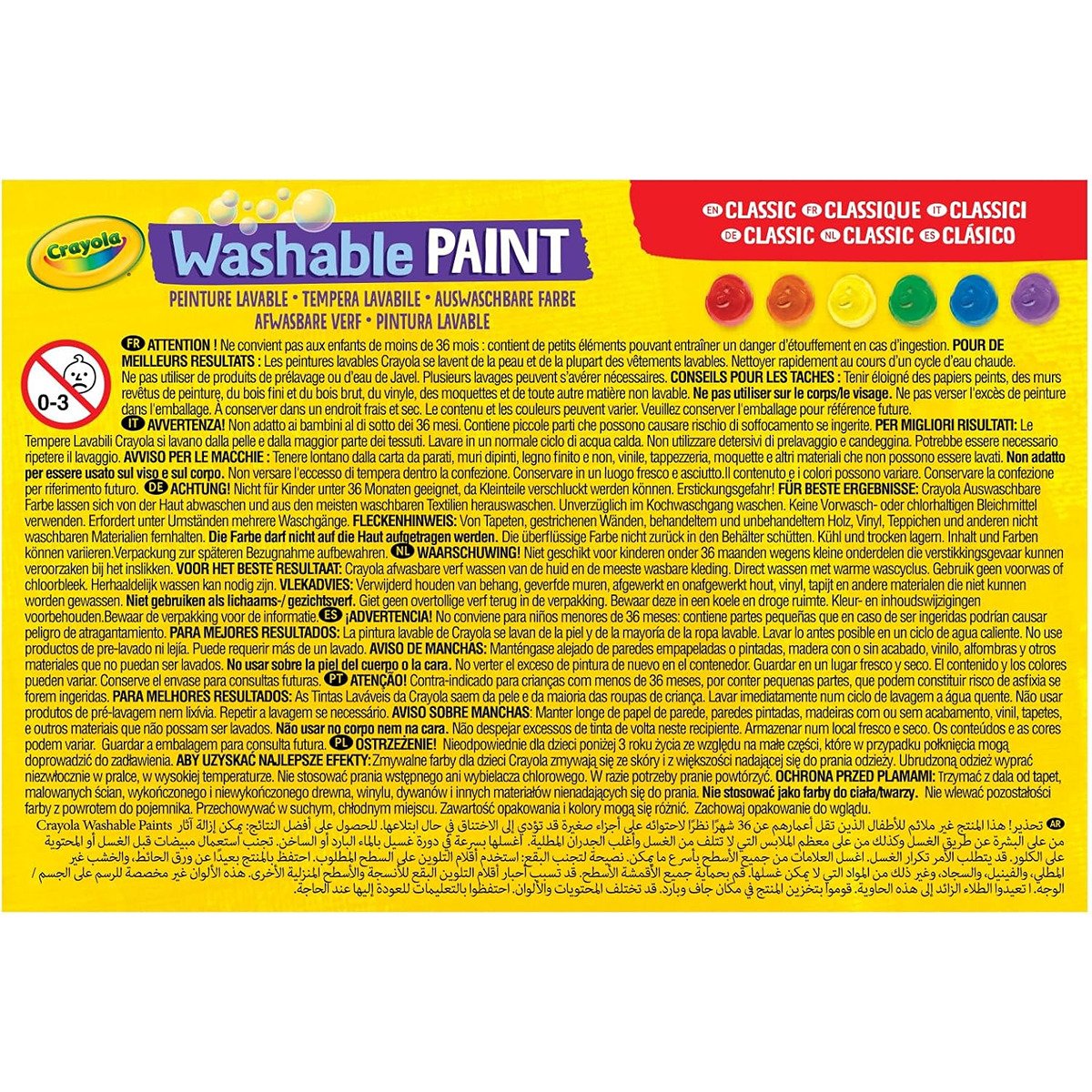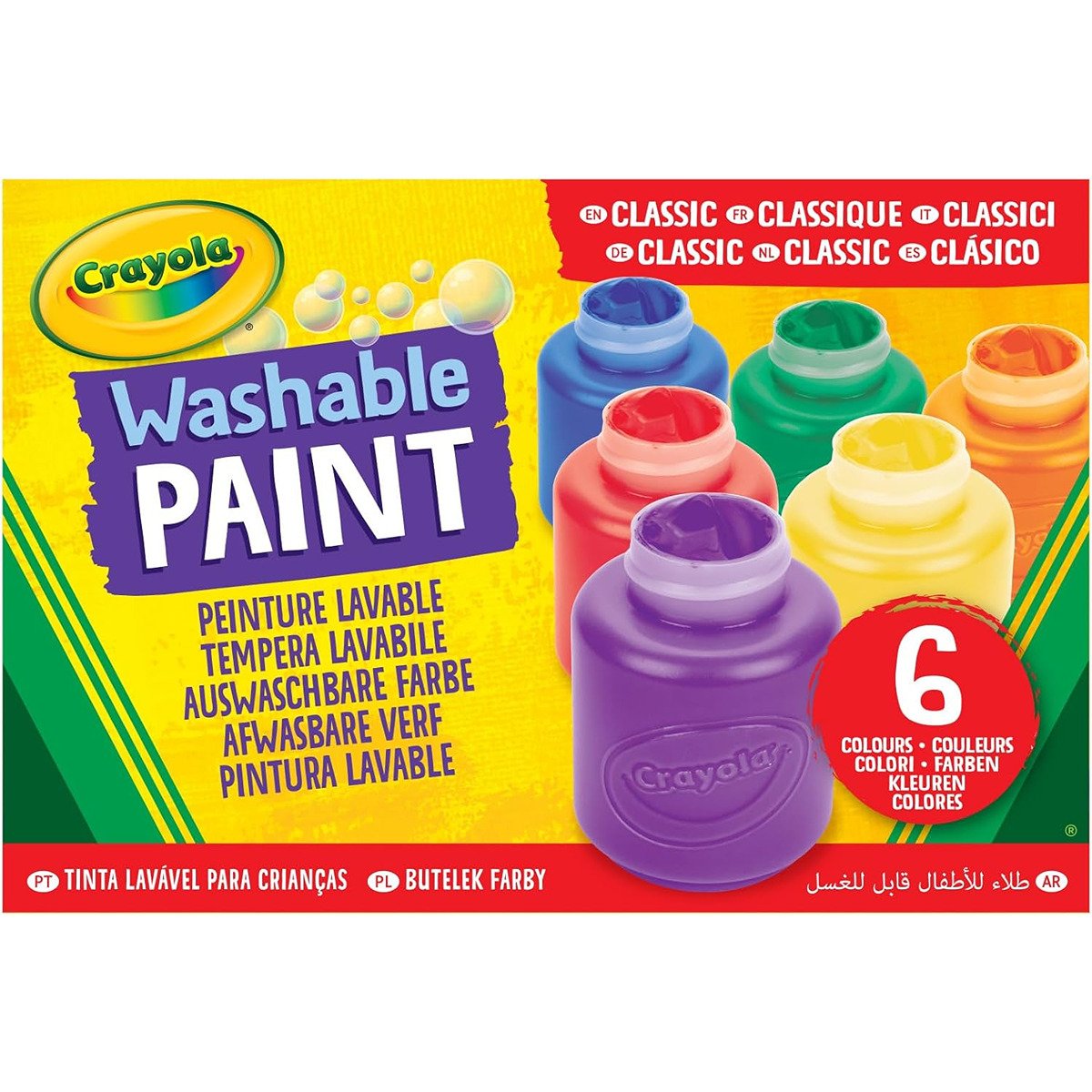 6 ct. Washable Kids’ Paint, 2-oz. Bottles, Assorted Colors – Non-Peggable