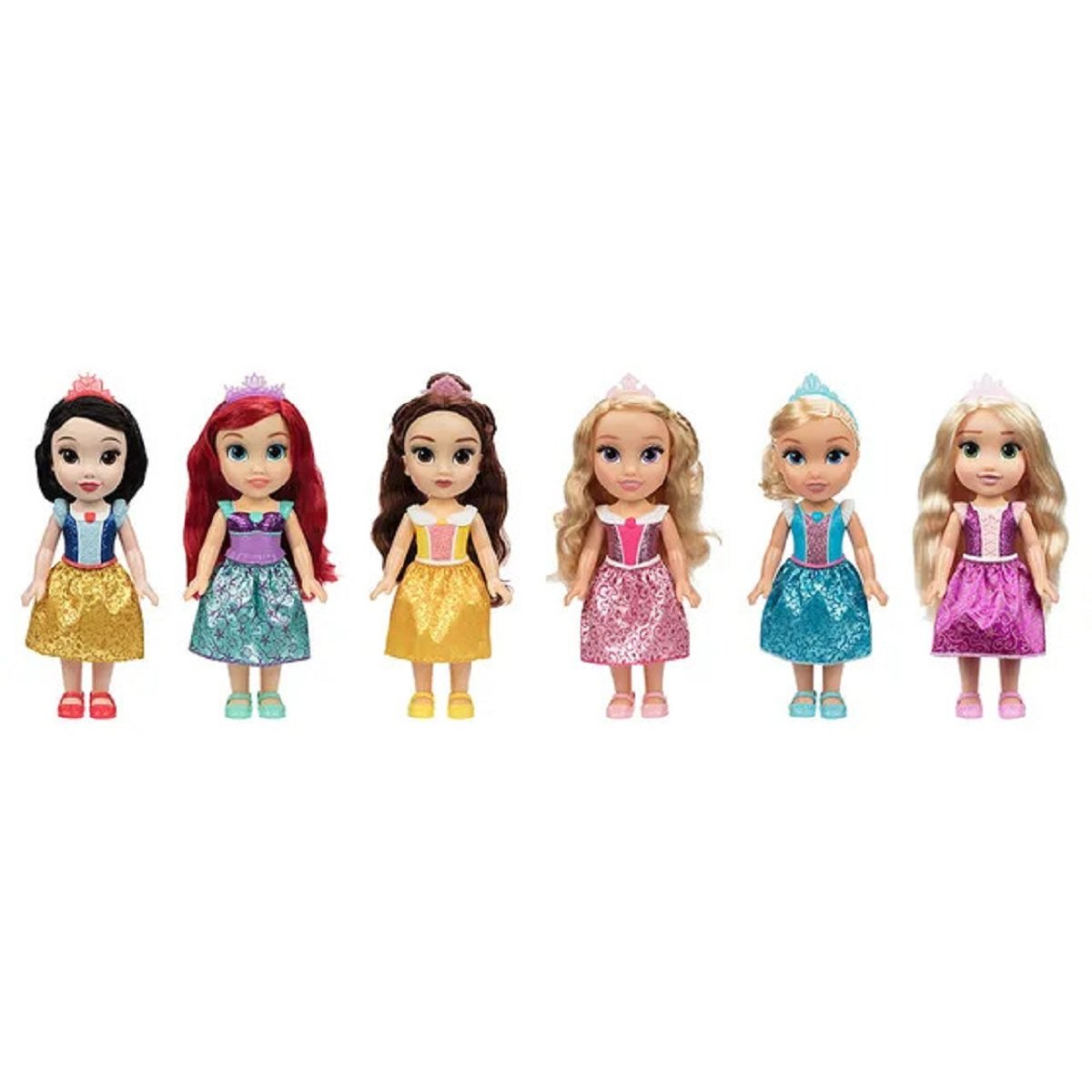 For every girl who dreams of adventure, there’s a Disney Princess to show her it’s possible. A Disney Princess is someone who believes in herself, never gives up and exhibits bravery while exploring new and exciting worlds. She sets an example for all girls to be honest, kind, curious, shows concern for others and how to be a good friend. A Disney Princess who stays true to her heart knows that she possesses the courage to fulfil her dreams and that adventure awaits! , , Your little princess can recreate his or her favourite scenes from the hit Disney film or create new stories with the doll. Each come with their signature dress (moulded bodice), tiara and shoes. Collect all Disney Princess characters: Ariel, Belle, Cinderella, Rapunzel, Aurora, and Snow White (each doll sold separately). , , Please Note: Styles and color of received item may vary depending on availability,