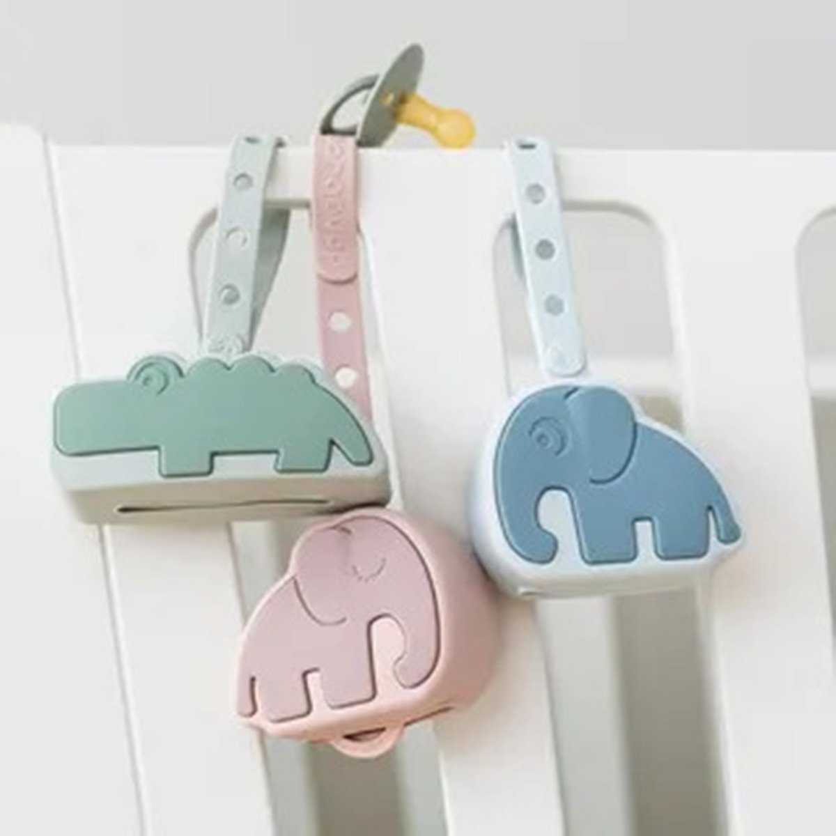 Done By Deer Silicone Pacifier Pouch Elphee Blue The Done by Deer Silicone Pacifier Pouch is a practical and playful solution for keeping pacifiers clean and within easy reach. Shaped like beloved Done by Deer characters – Croco or Elphee – this soft, food-grade silicone pouch features a zip opening and a handy loop for attaching to diaper bags, strollers, or backpacks. The hygienic, wipeable interior holds up to two pacifiers, making it ideal for daily outings, daycare, or travel. Functional and fun, it’s a must-have accessory for modern parents. Features Hygienic storage: Keeps up to two pacifiers clean and protected on the go Soft & safe silicone: Made from durable, food-grade silicone that’s BPA-free and easy to clean Fun character design: Features Croco in Green or Elphee in Blue or Powder for playful functionality Zip closure & clip loop: Secure zip and handy strap easily attach to bags or stroller handles Easy to clean: Simply rinse or wipe down with soapy water for quick maintenance Compact & lightweight: Perfect for travel, daycare, or everyday use