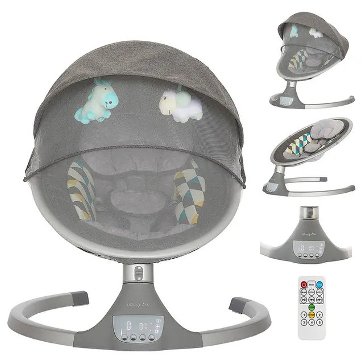 The Zazu baby swing by Dream On Me which is designed and engineered to entertain and comfort baby from birth to six months. It’s compact, contemporary frame and multi lullaby melodies make for a comforting solution for your baby at home or away so you can enjoy a few hands-free moments. With 5 speed options you can choose the swing speed that baby prefers most. Connect your phone using the electronic Bluetooth feature and play your babys favourite melodies or soothing nature sounds. Zazu has toy mobile with 2 plush toys that pivots easily out of the way. The seat is adorned with pastel prints which will tastefully complement your home decor. Add more peace of mind with mesh cover canopy when little one is napping or out of doors. 5-point harness, Anti-skid and comfortable seat pad makes this swing as must-have as it’s designed with parenthood in mind.