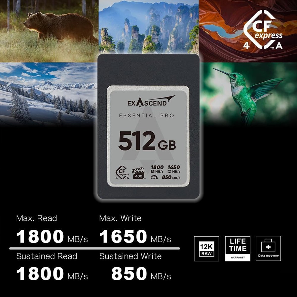 Exascend Essential Pro CFexpress TypeA 4.0 Card 512GB/ Read: 1800 MB/s, Write: 1650 MB/s
