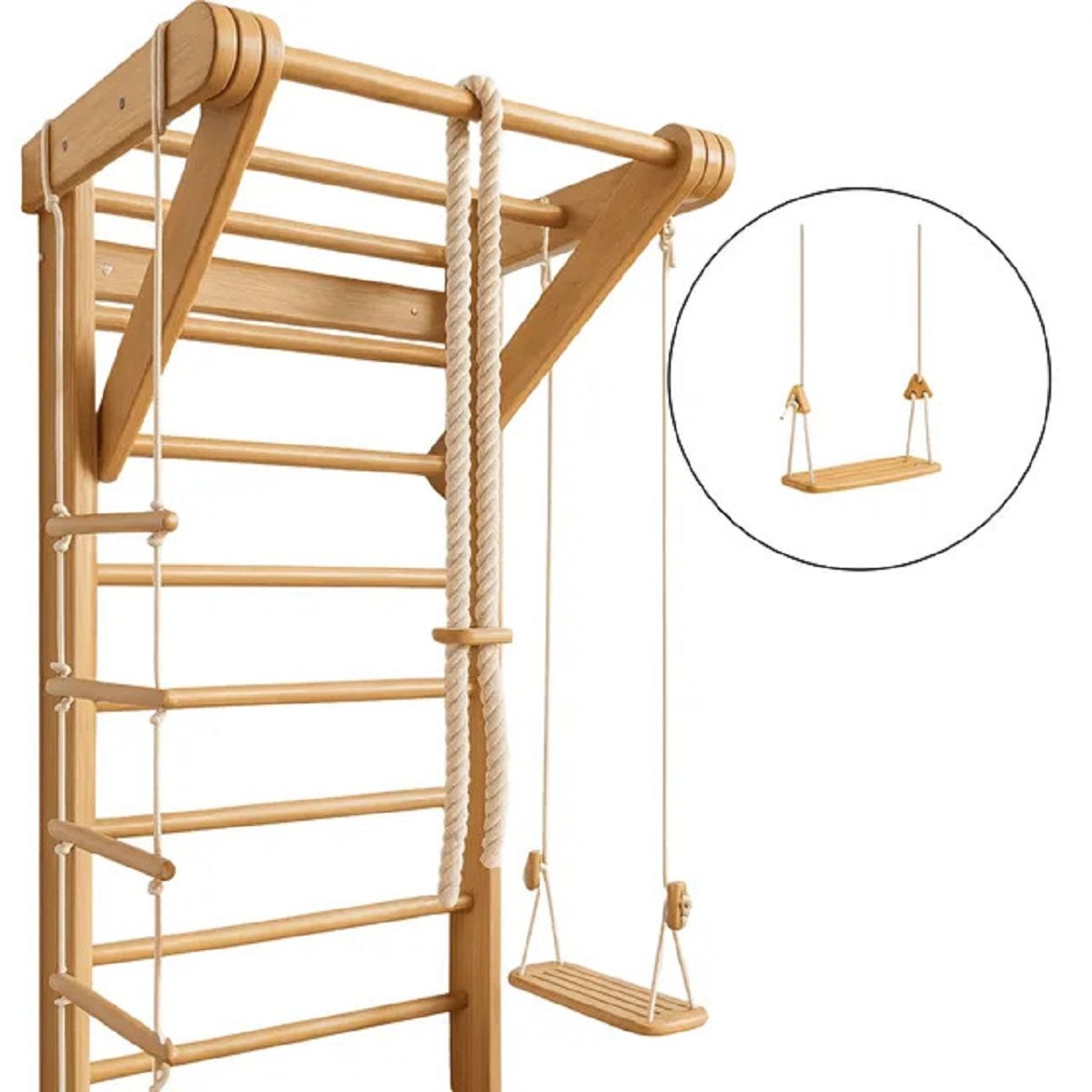 Ezzro-Indoor Play Swedish Ladder Gym with Swing-Natural