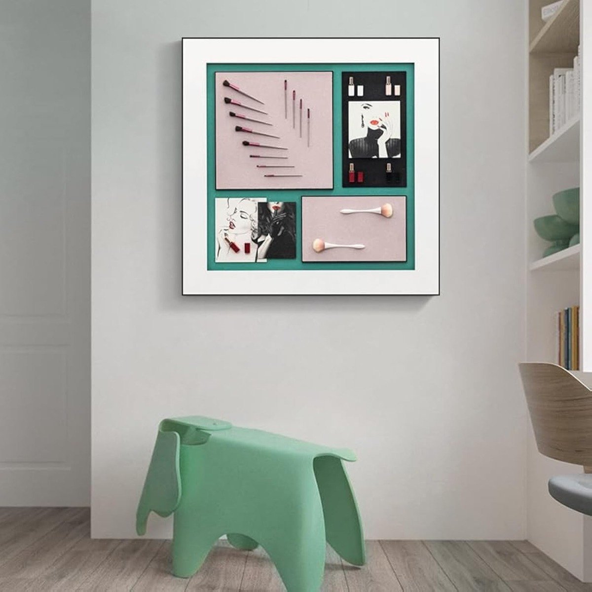 This fashionable makeup art canvas adds a touch of style to any room in the home. Measuring 100x100cm, it provides a large canvas to showcase the eyelash beauty trend in vivid detail. Frameless, it has a contemporary look that will complement both modern and traditional interior styles. Whether hanging in the living room, bedroom or bathroom, this wall décor captures the artistry of makeup application up close yet from a distance will subtly accentuate your space. Easy to hang, it requires no frame so offers a low-maintenance way to refresh your wall’s appearance. Suitable for any gender, this unique poster makes an on-trend statement about your interests and tastes.