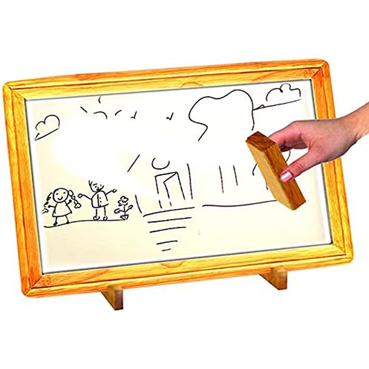 A magnetic board on one side. And a white board on the other. That’s 2-in-1. And twice the fun!