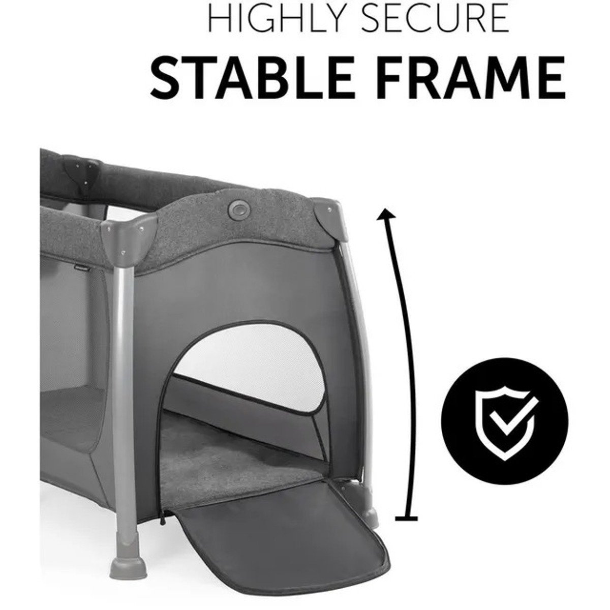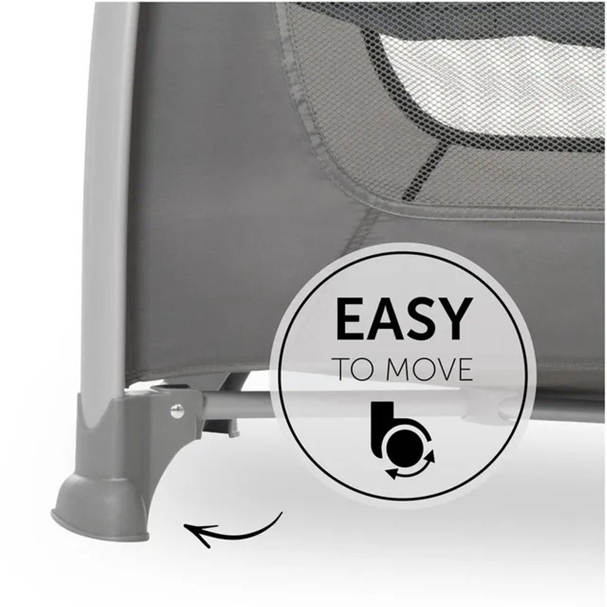 The Hauck Play N Relax Center Travel Cot in is a versatile 4-in-1 travel solution designed to support parents and children from newborns onward. Featuring a removable bassinet, a convenient baby changing station with a safety belt, and a spacious play area, this multifunctional cot covers all the essentials for sleeping, changing, and playing. Its elevated newborn resting surface allows you to keep your little one within arm?s reach during the night, promoting bonding and easy care. Lightweight and foldable, the cot includes a foldable base and a compact carry bag for hassle-free transport and storage. Two integrated wheels provide easy mobility, turning the cot into a secure playpen anytime. Smart side pockets keep diapering essentials within reach, while a toddler-friendly side exit encourages growing independence. Assembly and folding are effortless with the one-button fold system, making it ideal for travel and everyday use. For added comfort, pair it with the optional 120 x 60 cm foam mattress and fitted sheet. Stylish, practical, and designed with modern families in mind, the Play N Relax Center is your go-to companion for cozy naps and fun play?at home or on the move.