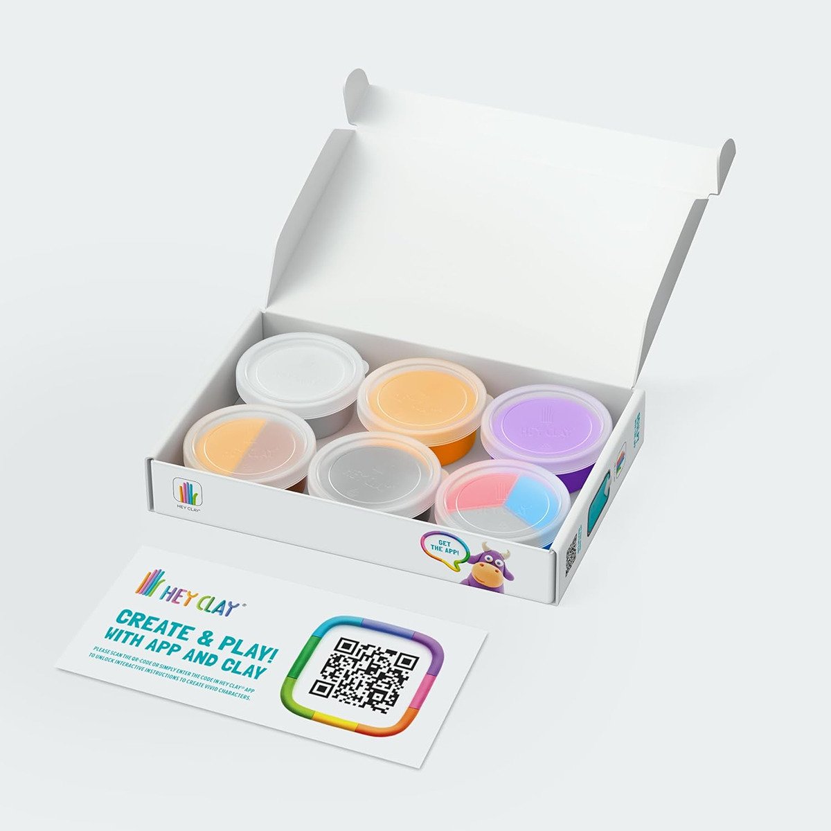 HEY CLAY is a set of soft, fragrant mass that allows you to create a design. You are afraid that you will not be able to do such miracles as on the packaging. It’s nothing hard! All you need to do is download a dedicated application, enter the code from the box and you will create it according to the instructions in the application. It is a combination of creative fun and educational application. You can make your own beautiful figurines/monsters/characters with the creative soft and delicate clay of bright colors. The app serves as a guide for designing – starting from simple shapes to gluing together a life-size figure, which stimulates the imagination. It is meant for creative play and collecting handmade figures. OCCUPY KIDS FOR HOURS Hey Clay contains 5 containers with a soft, fragrant creative mass and an access code to the application. The colors are presented on the packaging, they allow you to create the selected figurine. Part of the mass remains for reuse, so you can realize your own creative idea. The mass dries in the air within 24 hours Become a professional HEY CLAY? artist! Colorful and engaging, it instantly takes your kid on a fantastic journey of creative crafting! Want to teach your kid clay modeling with fun? HEY CLAY? makes it easy. Starting with simple balls and sausage shapes you will soon make amazing characters, just like real sculptors!