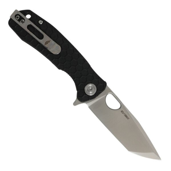 Arguably the best-looking Honey Badger, the Tanto knife is recognizable by its two edges meeting at a sharp angle, creating a strong and durable tip.