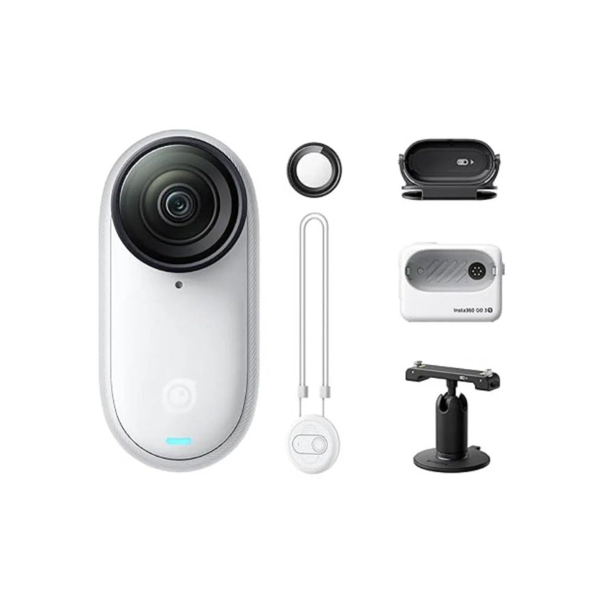 Insta360 GO 3S Stand Alone| 10m Waterproof Tiny Action Camera, 4K Wide-Angle Video, 2.2″ Flip TouchScreen w/ Action Pod, Auto Stabilization, with Apple FindMy, Magnet Pendant, Clip – White