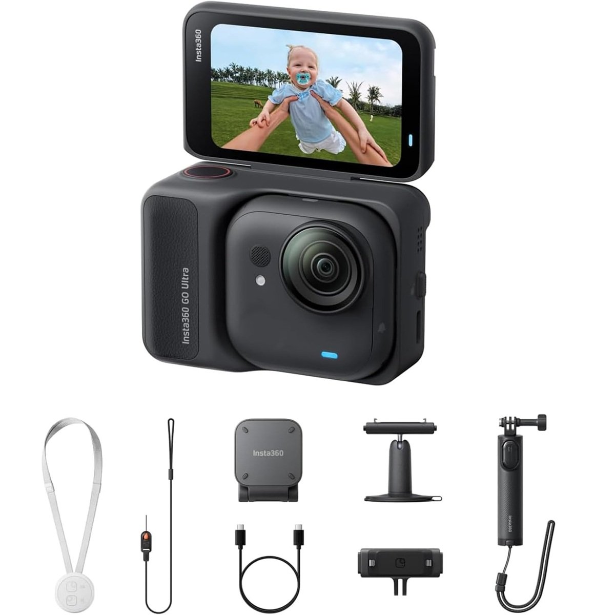 Insta360 GO Ultra Creator Bundle Midnight Black – Tiny 4K Cam, Lightweight & Portable, Low Light Excellence, Mount Anywhere, FlowState Stabilization, 200 Min Battery Life