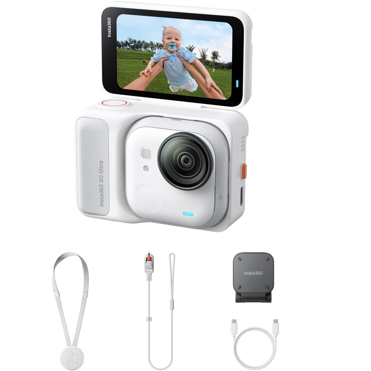 Insta360 GO Ultra Standard Bundle| 4K Tiny Action Camera, Low-Light Capture, 10m Waterproof Wide-Angle, w/ Flip Screen FlowState Stabilization, Magnet Pendant, Clip for Travel & Vlogging, White