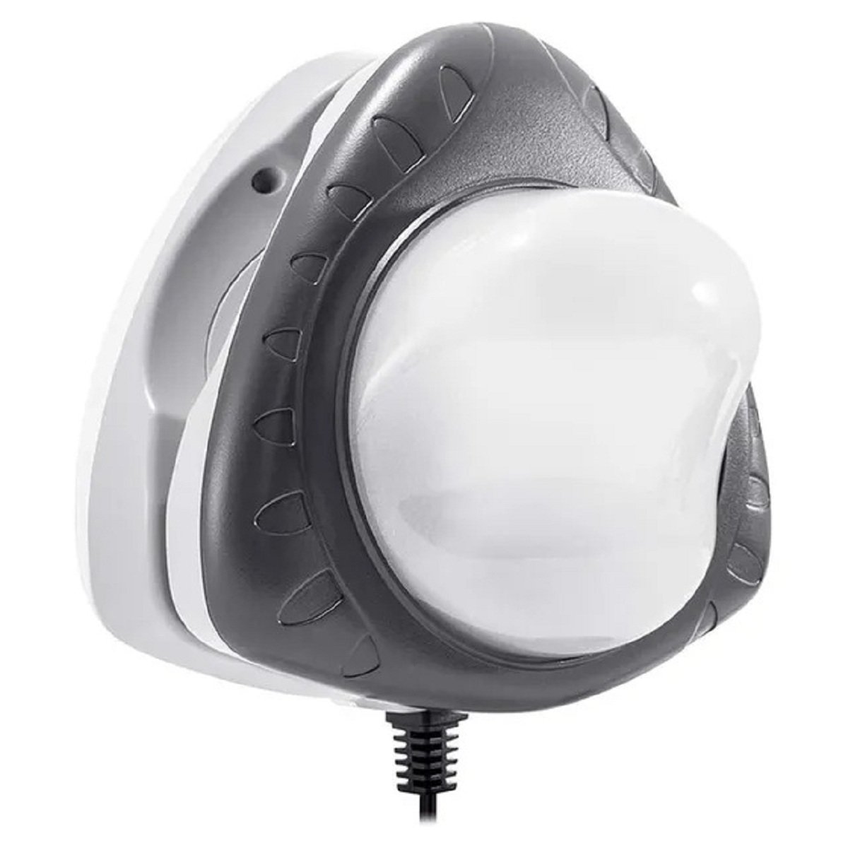 Intex LED light uses magnetic technology to create a light system that safely generates low voltage current through the pool’s sidewall to a powerful LED light inside and outside the pool. The advanced, energy efficient LED light delivers more brightness to your pool than a conventional 50-watt halogen pool light. , The LED Pool-Wall light is the ultimate in flexibility and can be attached to any sidewall in any location – and be easily moved to different parts of the pool for different lighting effects. If the inner light unit becomes separated from the outer power source, it will automatically float to the surface for easy retrieval. , Beauty, convenience, innovation, performance, and value – all part of the Intex LED Pool-Wall light! , The outside unit transmits power safely and wirelessly to inside the underwater LED where the magnetic technology holds the two parts together.