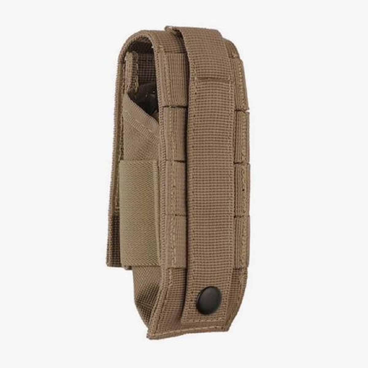 Our MOLLE sheath, pronounced “Molly,” is made of durable ballistic nylon and features a hook-and-loop closure and a snap webbing strap for attachment on the back.