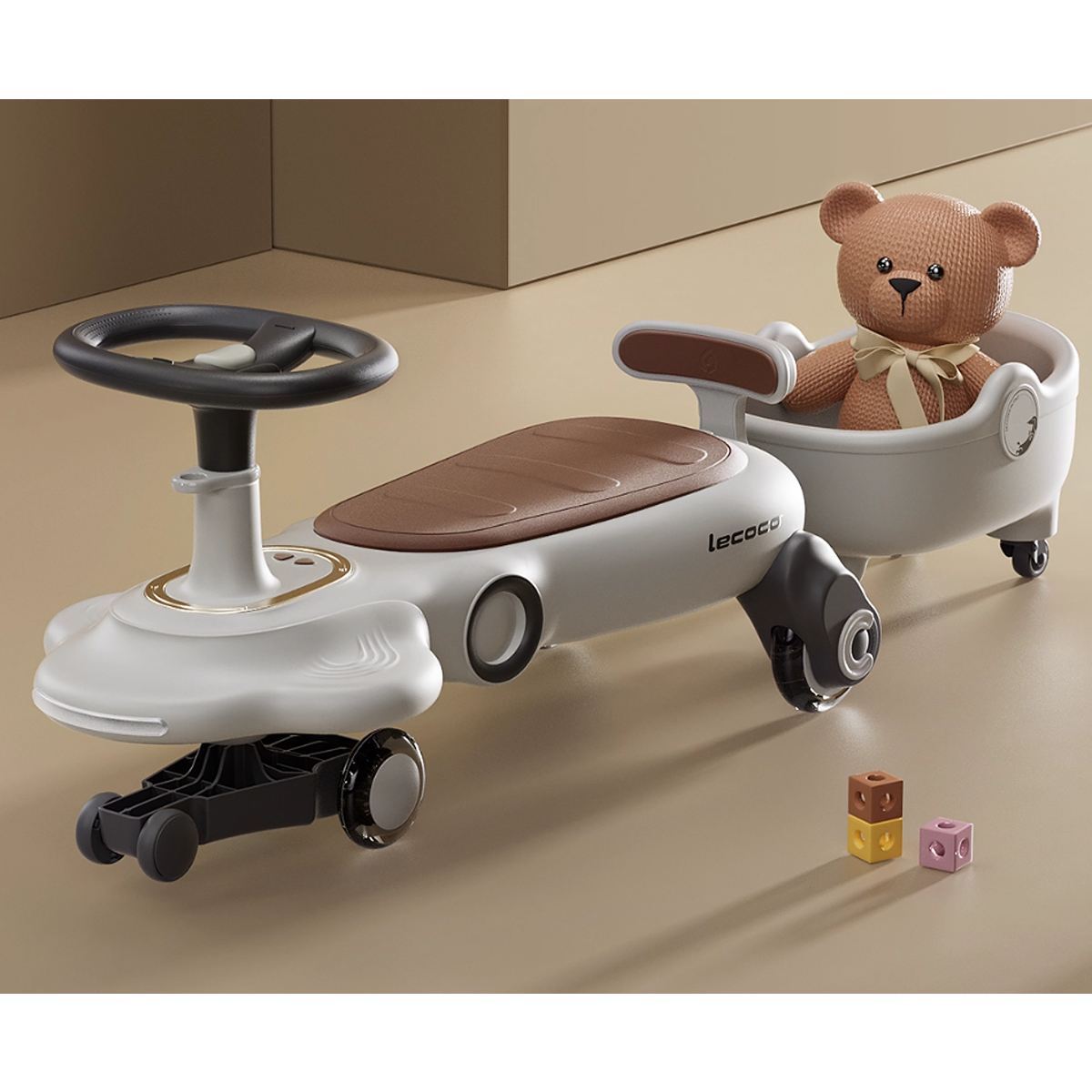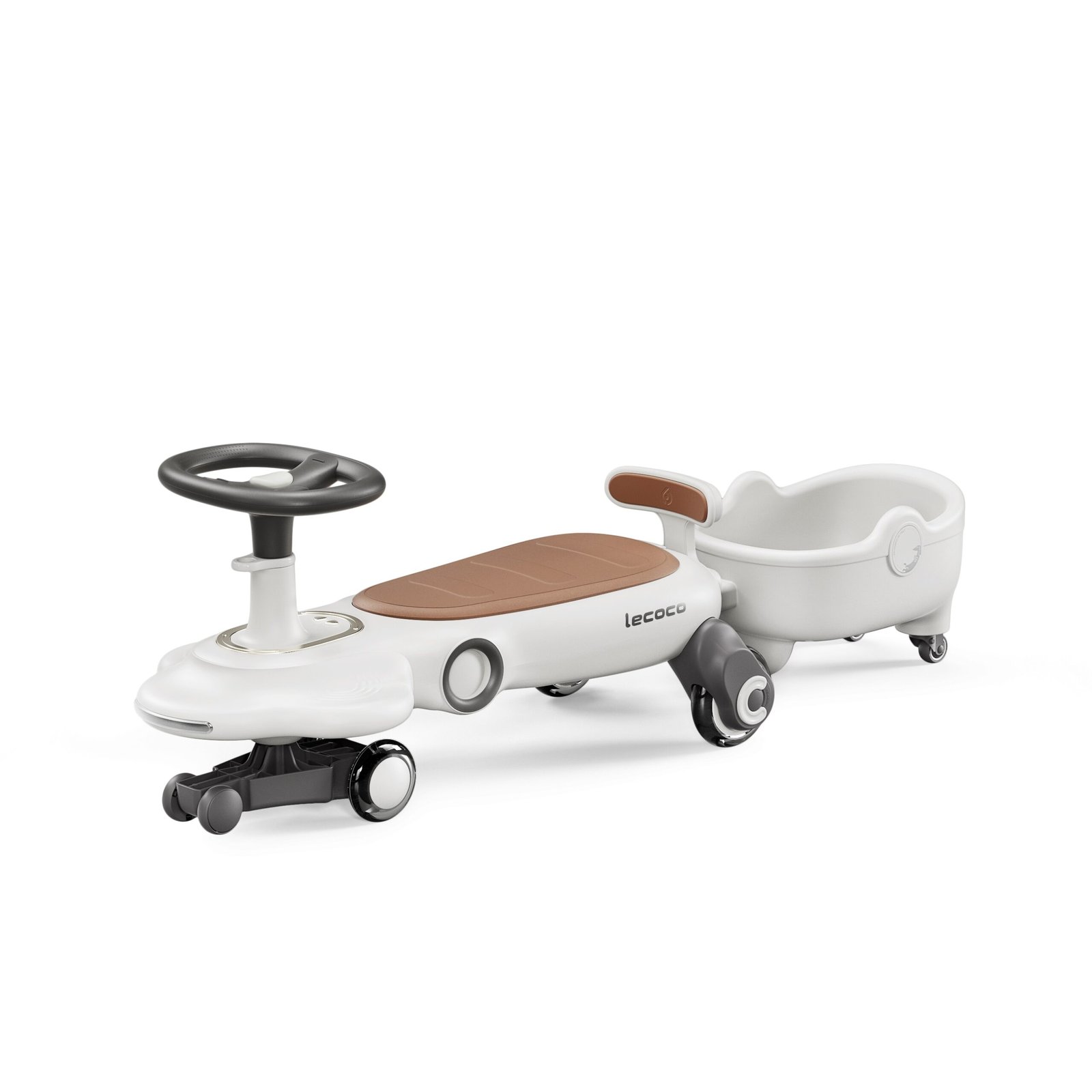 Lecoco Figg-F2-T Ride-On Car with Trailer | 360° Steering, PU LED Wheels, Music & Parent-Child Seat – for Kids 10M+