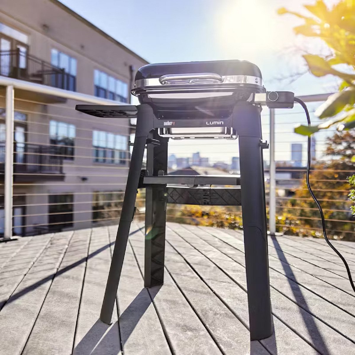 High on heat and big on versatility, this smaller version of Weber’s Lumin* electric barbecue takes urban outdoor barbecuing to new heights. This multifunction electric barbecue reaches temperatures over 315°C for high-quality searing, while smoke infusion further enhances that barbecue flavour guests crave. It can also keep food warm so everyone can serve themselves. The collapsible stand is easy to set up and provides added space and built-in tool hooks. Modern and convenient, Weber’s new Lumin Compact electric barbecue with stand is designed to suit both your taste and your outdoor space. *LUMIN is a trademark of Weber-Stephen Products LLC and is the subject of pending registrations or applications in the United States and other countries.