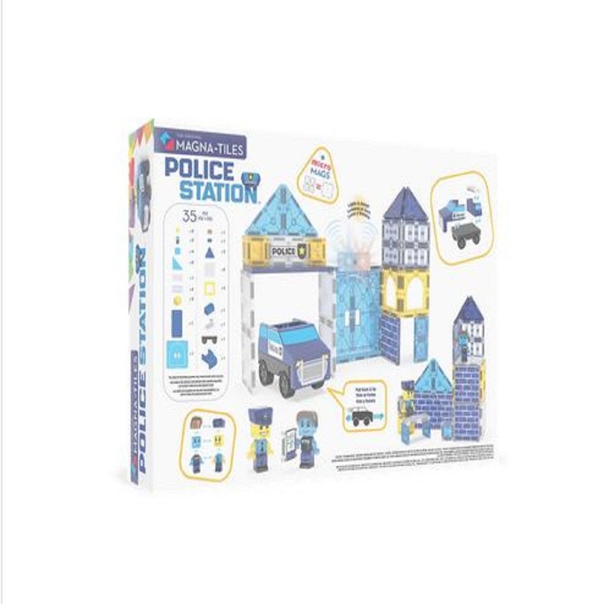 What Makes It Unique: The MAGNA-TILES Police Station35-Piece Set is uniquely packed with action and imagination, featuring a Pullback Chassis, Light & Sound Tile, and Mix & Match Police Figures for endless heroic adventures and creative play.