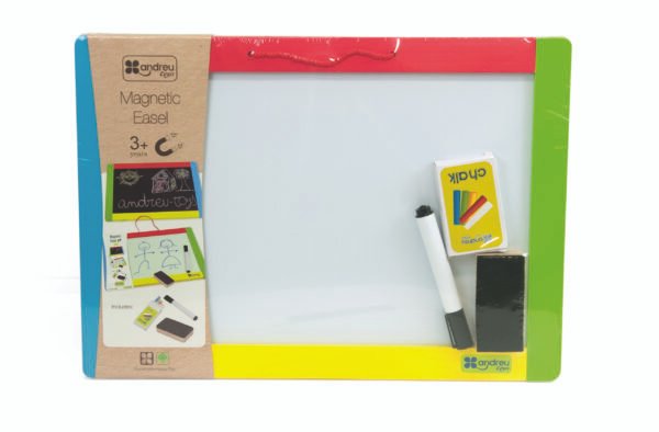 Nice easel for drawing, to paint and to place the magnetic letters and numbers on it (not included). With eraser, chalks and marker.