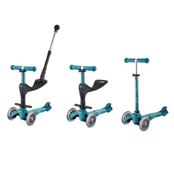 Amaze your little one with the stylish Mini Micro Deluxe 3-in-1 Ice Blue, a versatile microscooter designed for growth and fun. It features a unique, patented steering system for easy maneuverability and a handlebar equipped with a safety system. This innovative design includes a detachable seat, perfect for younger children to sit, which can be removed to transform into a conventional Mini Micro T-bar scooter as they grow. Crafted with safety and comfort in mind, the scooter boasts soft plastic and rounded edges to prevent injuries. The glass fiber footboard is made of soft plastic, and the brake is designed not to heat up during use. This durable and thoughtful design ensures endless hours of fun, making it the perfect gift for kids.