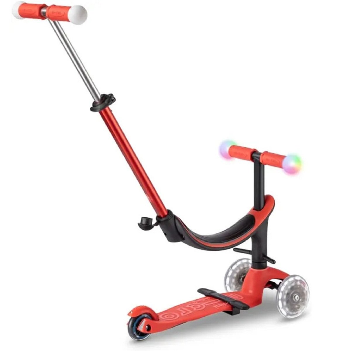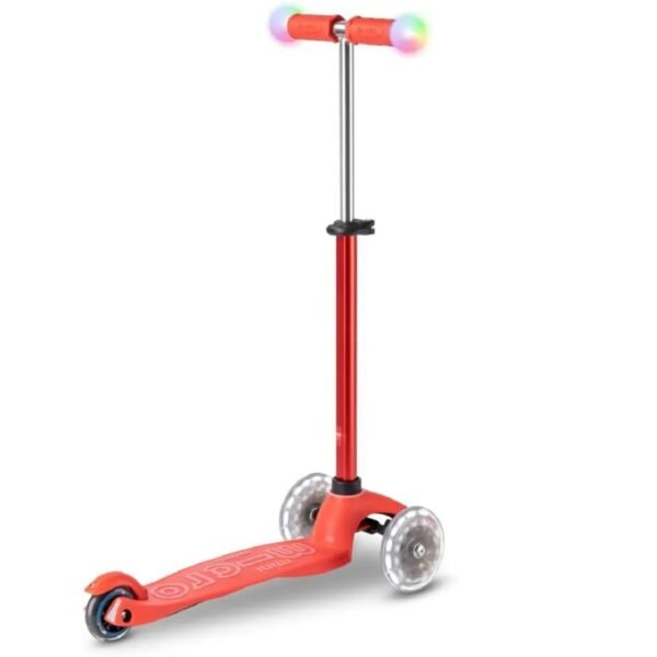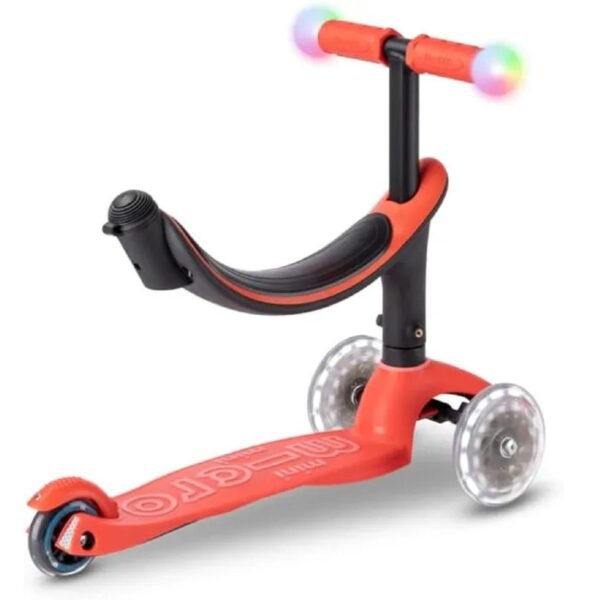 The Micro Mini2Grow Deluxe Magic LED is the perfect companion for the first years of your child’s life. Thanks to its multifunctionality, it can be used from the age of 12 months and will accompany your child until at least the age of six. The innovative and ergonomic all-in-one scooter can be used in different variations: at the very beginning with seat, two footrest options and push bar for the parents, later on without push bar, as a mix between balance bike & scooter and finally as a classic Mini Micro Deluxe with magic LED light bulbs on the handlebar and LED moon wheels. The push bar for the parents can be used vertically in addition to the standard horizontal position. This means that only one hand is needed for pushing, thus protecting the wrist and muscles. In addition, the Micro Mini2Grow Deluxe Magic LED convinces with a height-adjustable handlebar, a patented lean-to-steer mechanism and an extra grippy footboard.