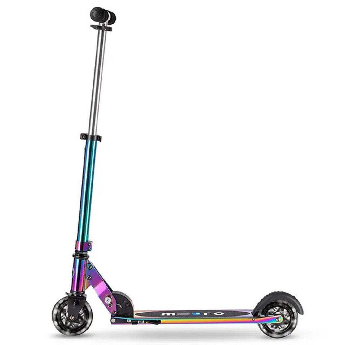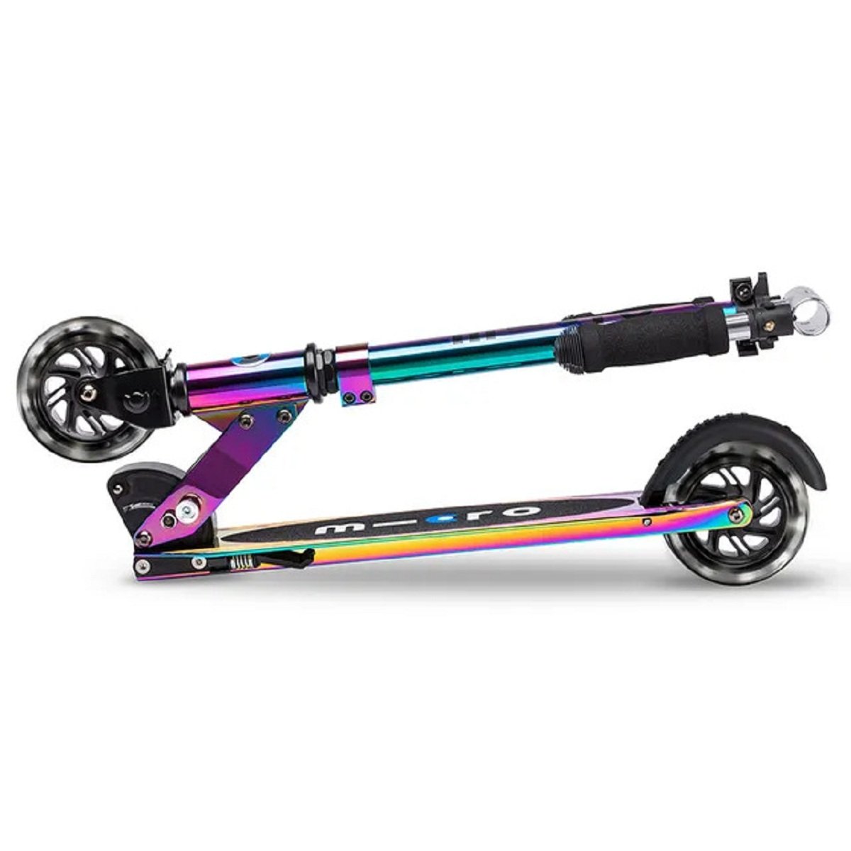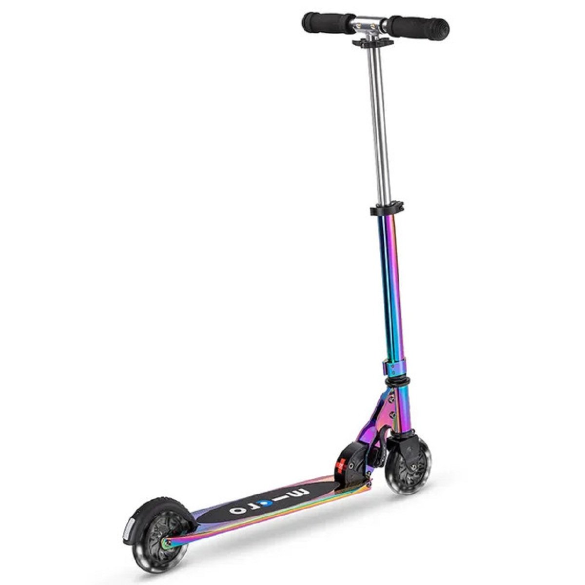 Get ready to light up your ride with the classic Micro Sprite LED Scooter in Neochrome! This fantastic scooter combines a sleek design with fun, functional features to make every journey an adventure. With its compact size and low weight, it’s incredibly easy to handle and carry, making it perfect for both quick trips and longer rides.Experience the cool factor with its striking LED wheels at the front and rear, complemented by a dazzling neochrome finish that truly makes it stand out. Designed for versatility, this scooter is suitable for children and adults alike, supporting riders up to 100 kg, ensuring everyone can enjoy a smooth and stylish scoot.