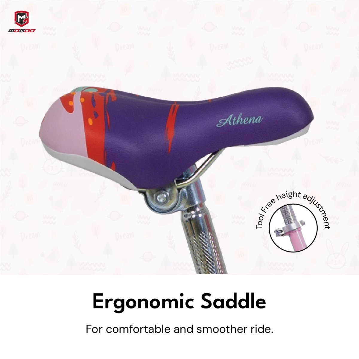 Welcome to the joy of riding with the Mogoo Athena Kids Bicycle 12-Inch—the perfect first bicycle for your little adventurer! Riding a bike is a wonderful milestone, and this safe and sturdy kids’ bike is designed to make that journey fun and secure. Built with a durable steel frame and high-quality parts, the Athena offers exceptional impact resistance and longevity, ensuring it stands up to active play. It features an adjustable seatpost with a quick-release mechanism, making it easy to customize as your child grows, ensuring they have the safest and most comfortable experience. The low-maintenance design means less hassle for you, and the stylish look, often including a fun front basket and vibrant color options, makes it truly special for young girls learning to ride confidently.