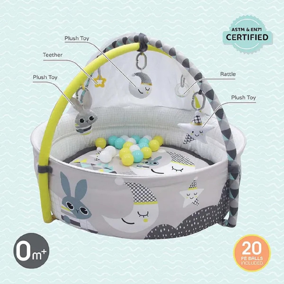 MOON A good night baby pool mat with mosquito net + 20 pcs balls, Om+, Baby playmat & Activity Gym