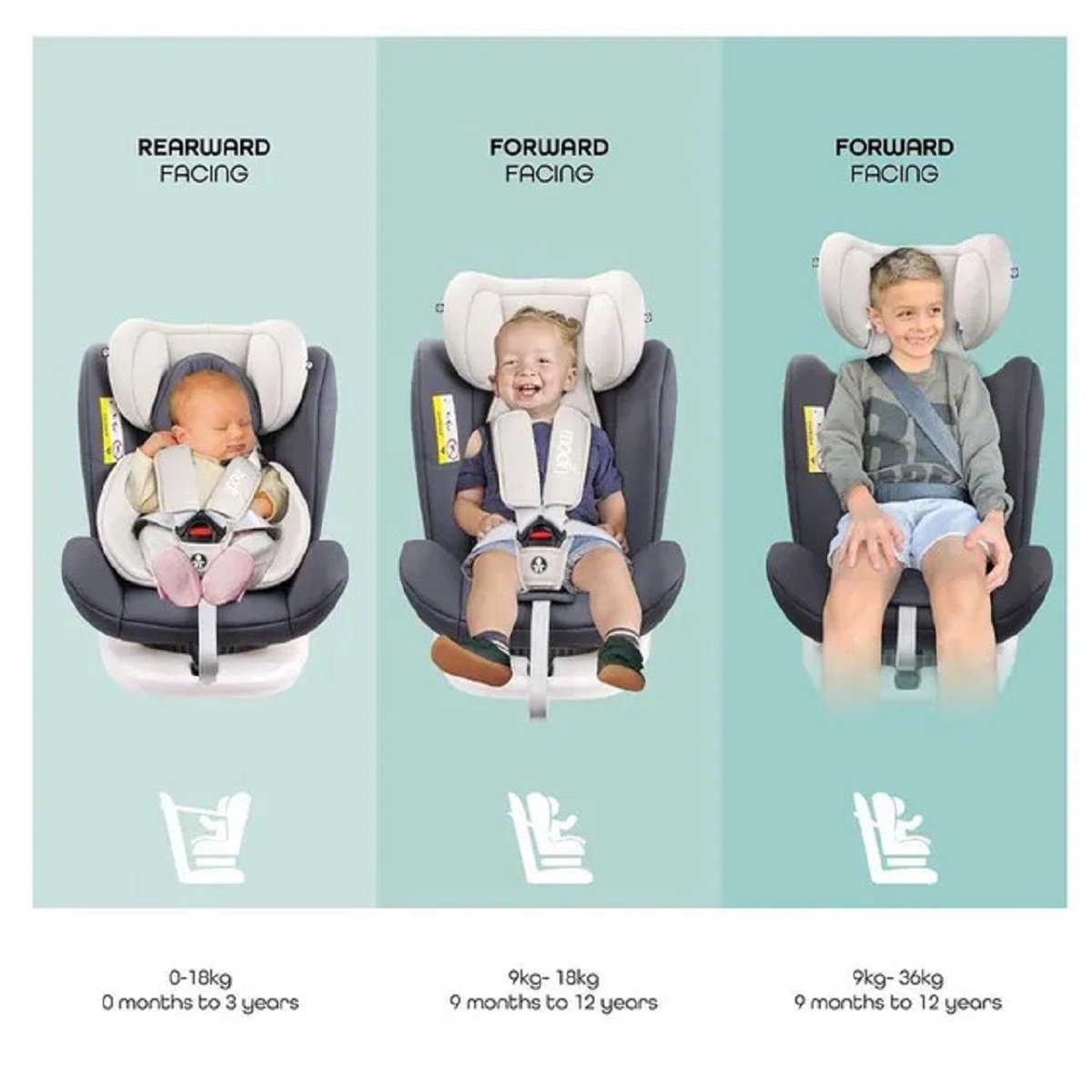 Say hello to the Moon Gyro Multi-Functional 360° Car Seat in Grey, your ultimate travel companion for your little one from birth up to 12 years (0–36 kg)! This versatile car seat features a fully rotatable 360° seat, making it super easy to get your child in and out, whether you’re parked or on the go. Enjoy peace of mind with multiple recline positions, including rear-facing for infants and three forward-facing options, ensuring maximum comfort and safety on every journey. Key features include a 7-position adjustable headrest for growing children, integrated side impact protection, and plush, breathable padding for a cozy ride. The Gyro is designed for effortless installation with ISOFIX compatibility, or you can use a seatbelt or tether strap, offering flexible options for any car. Crafted from premium foam and soft-touch fabrics, this sleek car seat measures just 45 x 50 x 60 cm and weighs approximately 10 kg, providing a compact yet powerful solution. It’s the smart, secure choice that truly grows with your child, making every adventure smoother and safer. FAQ:Q: What is the age and weight range for this car seat? A: It is a multi-stage car seat suitable from birth up to 12 years old (Group 0+/1/2/3), covering a weight range of 0 to 36 kg. Q: How does the 360° rotation work? A: The seat can be rotated on its base, which makes it much easier to place your child in the seat and secure them, especially in the rear-facing position. Q: How is it installed in a car? A: It offers flexible installation options. It can be installed using the ISOFIX system, the car’s seatbelt, or a seatbelt plus top tether strap. Q: Does the headrest adjust? A: Yes, it features a 7-position adjustable headrest to grow with your child. Q: What recline positions does it offer? A: It has multiple recline positions: one for rear-facing and three for forward-facing.