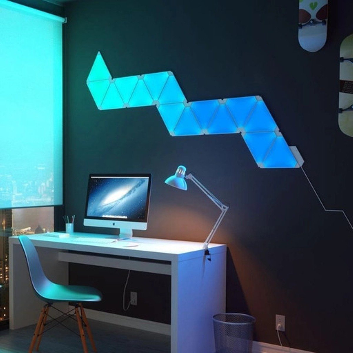 Nanoleaf Light Panels Smarter Kit Rhythm Edition 9 Panels 1 Controller is the latest lighting decoration. It is not just an ordinary lighting piece. The smart lighting panels react to pressure or changes in music in the room, adjusting their brightness and colors accordingly. In addition to the ease of installation, you can adjust the reaction of the panels through the Nanoleaf app, creating a unique artistic masterpiece on your wall. If you are looking for a distinctive lighting piece, Nanoleaf panels will add a unique, elegant, and sophisticated touch to your home.