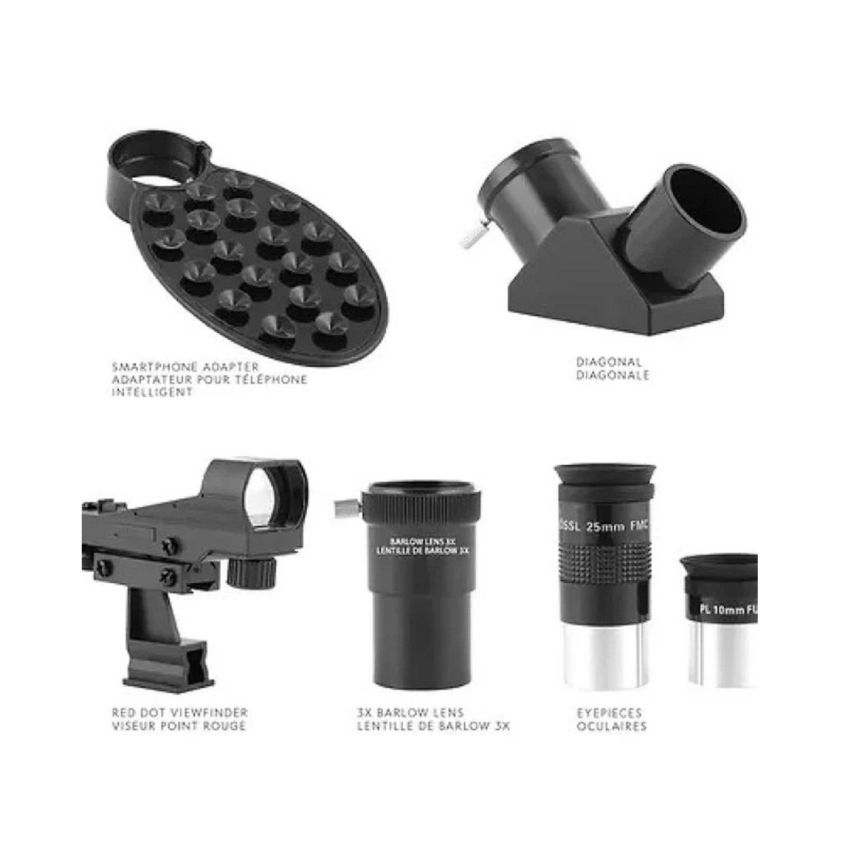 The National Geographic Sky Assist 102/660 Telescope is a powerful yet user-friendly refractor telescope, ideal for exploring planets, star clusters, and bright deep-sky objects. Featuring a 102mm aperture and 660mm focal length, it delivers sharp, wide-field views of celestial wonders. The included smartphone-compatible blue mount pairs with the ARTelescope App, allowing users to locate and identify constellations and planets while listening to fun, educational facts in real time. Complete with two eyepieces and a 2x Barlow lens for varied magnification options, this telescope offers an interactive and engaging stargazing experience for beginners and enthusiasts alike.