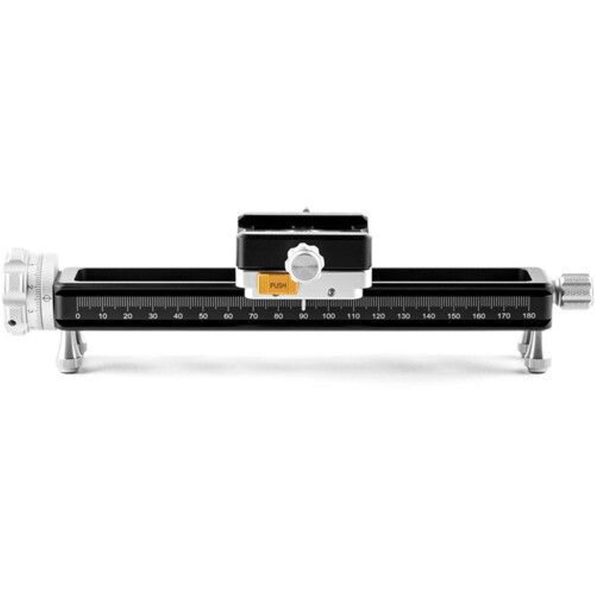 The Macro Rail can be mounted in most Arca-type clamps/ball heads on the market and also includes four detachable foot nails that allow the use of the rail directly on the tabletop. The stage travel per revolution is 1mm with engraved index marks on both sides of the rail for fine adjustments. The bottom for the rail includes 3/8″ and ¼” screw hole which allows the use of all tripod heads.